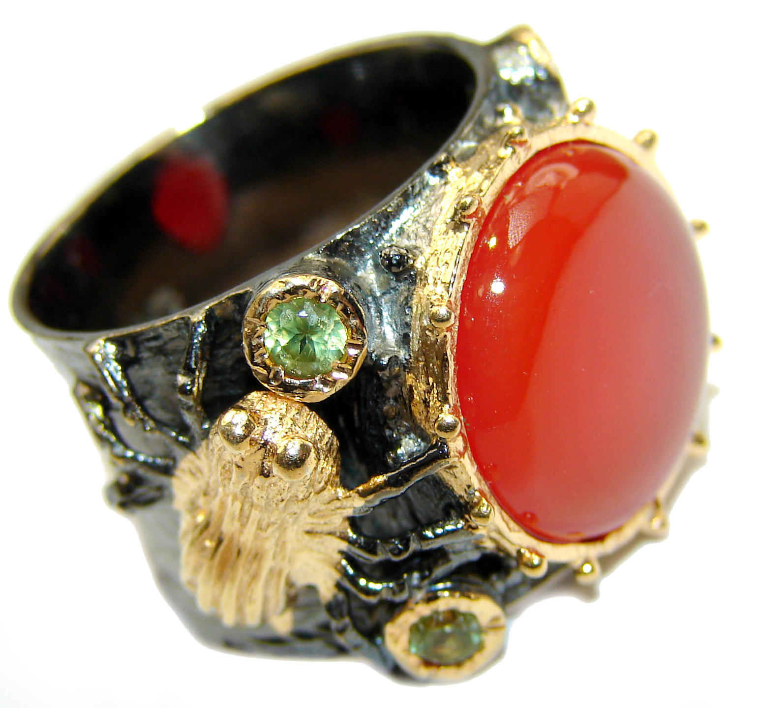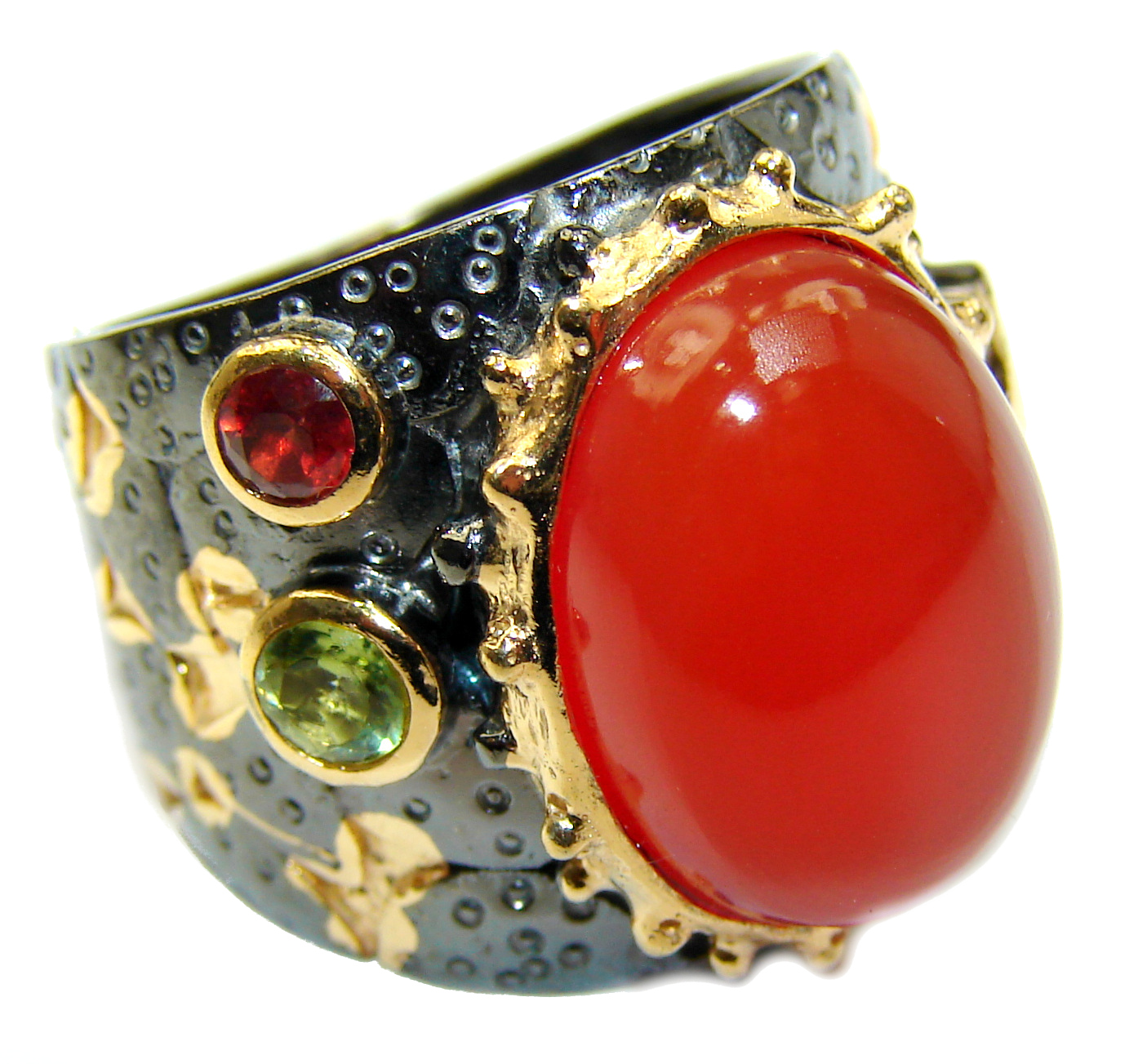 Genuine Carnelian 14K Gold over .925 Sterling Silver handmade Ring Size 7 1/2