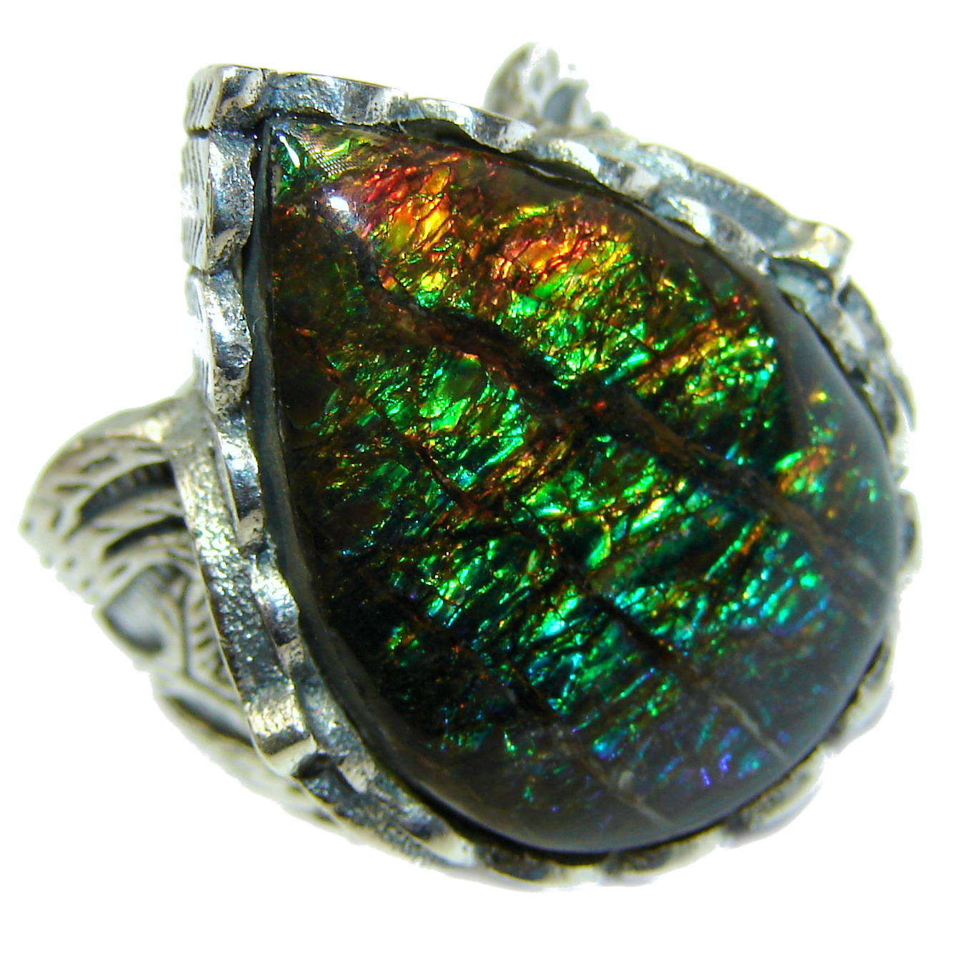 Pure Energy Genuine Canadian Ammolite .925 Sterling Silver handmade ring size 6