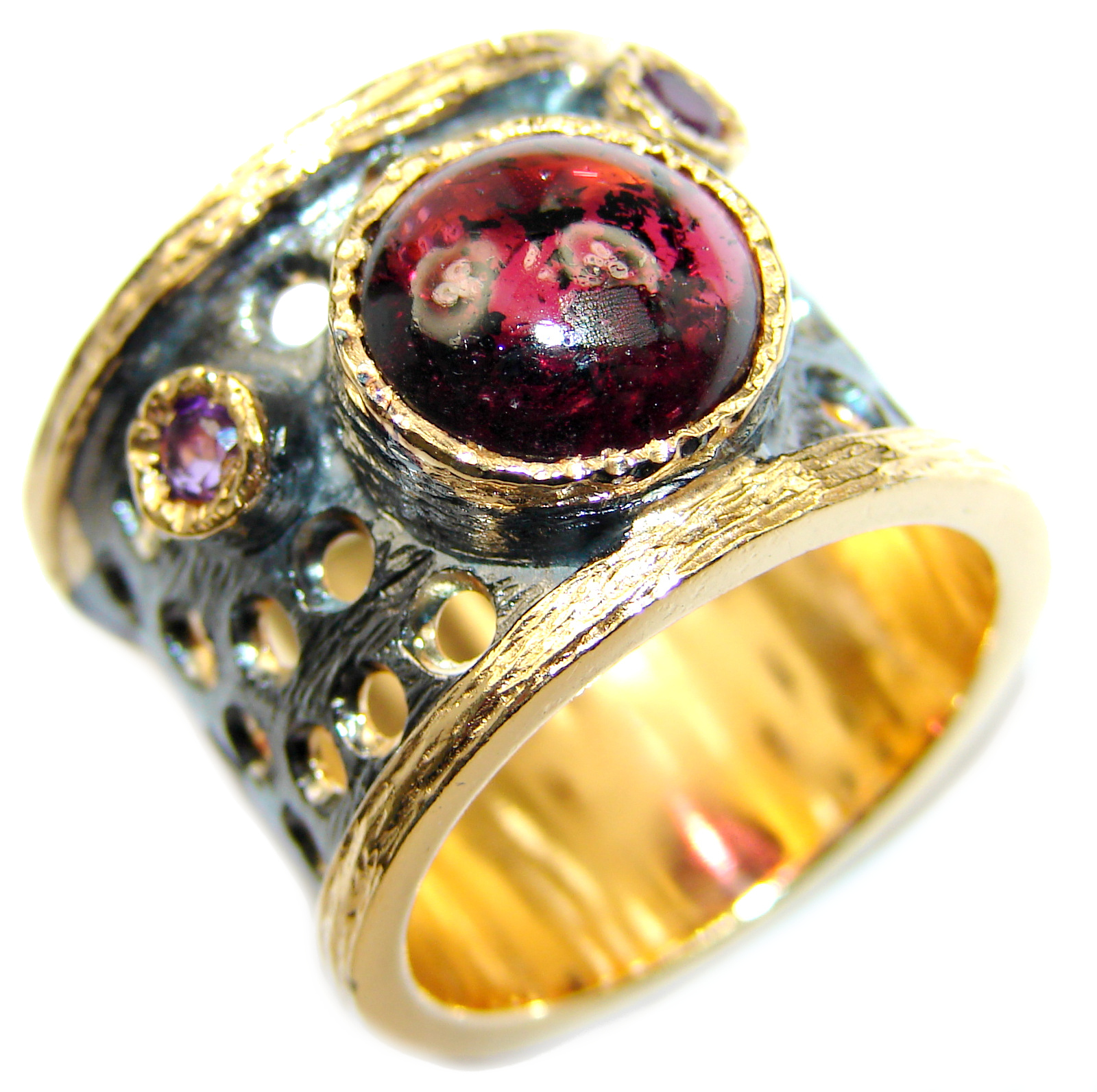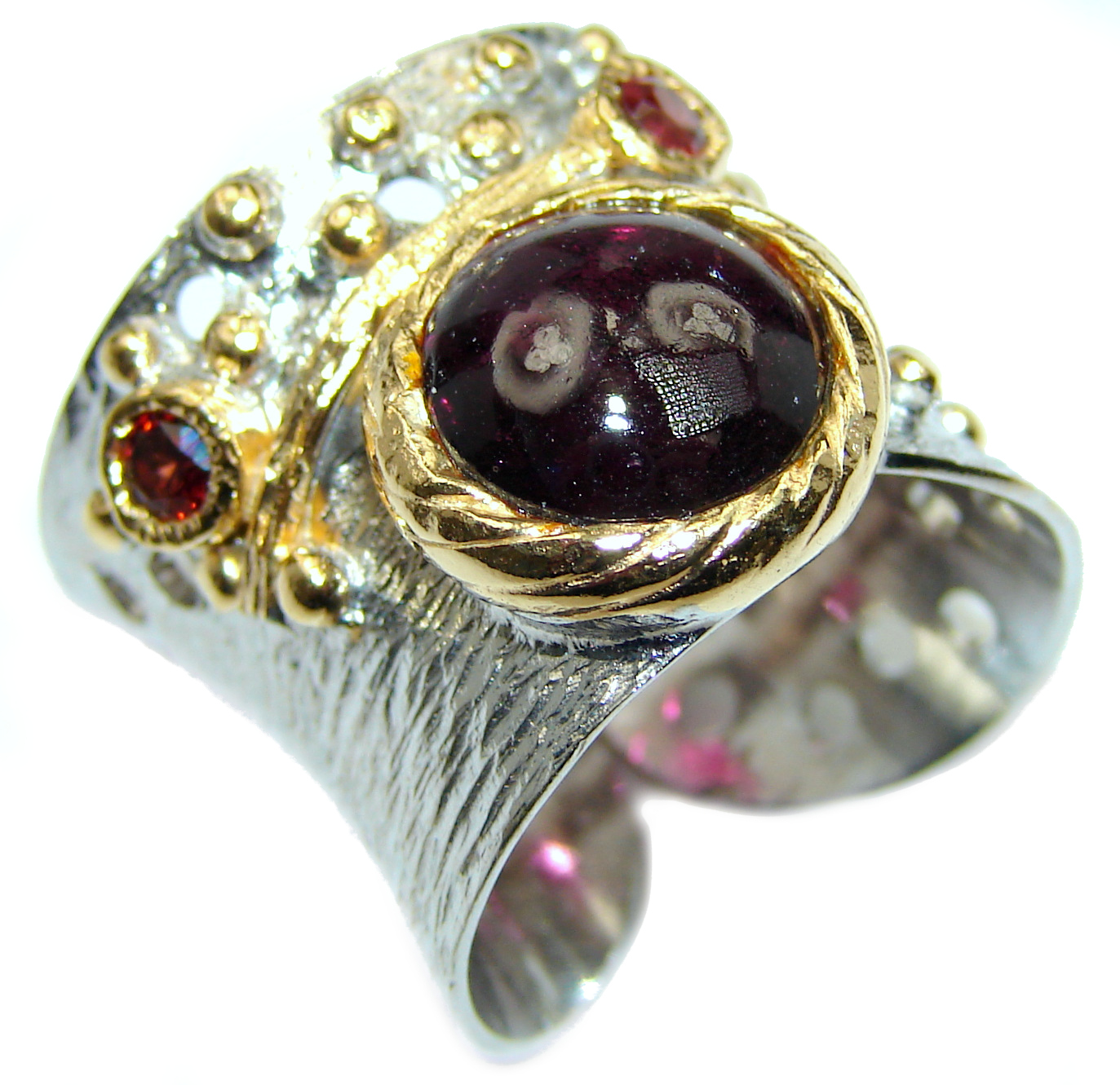Genuine 28 ct Garnet 14ct Gold over .925 Sterling Silver handmade Cocktail Ring s. 7 adjustable