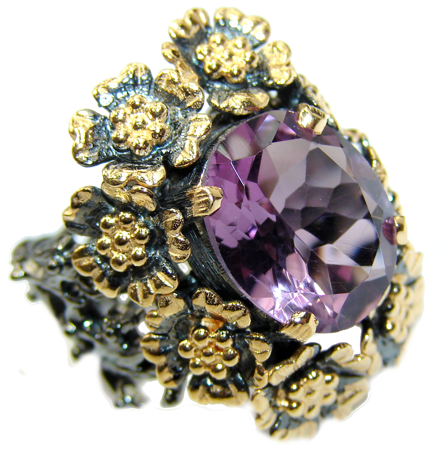 Spectacular 35ct genuine Amethyst .925 Sterling Silver handcrafted Ring size 7 1/4