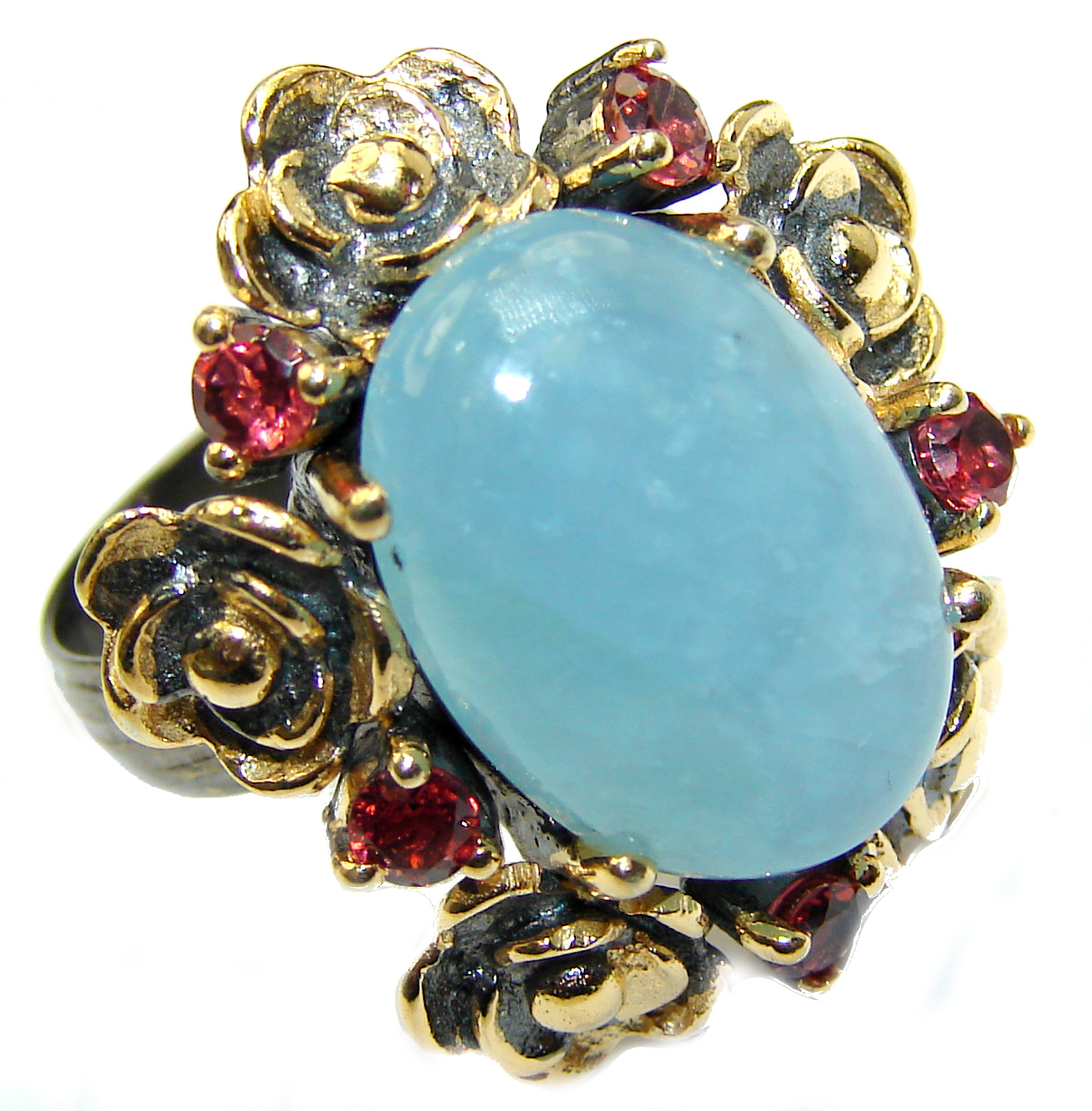 Antique Design Blue Aquamarine 14K Gold over .925 Sterling Silver handmade ring s. 8