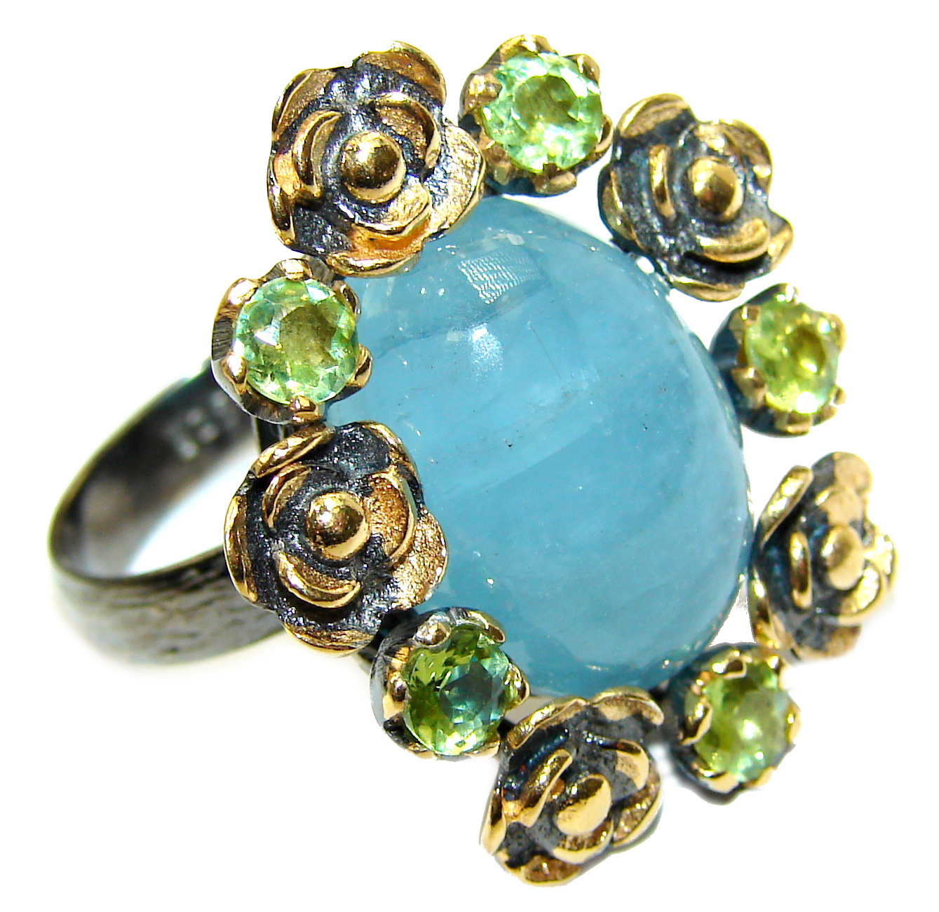 Genuine Aquamarine 14K Gold over .925 Sterling Silver handmade Cocktail Ring s. 7 adjustable