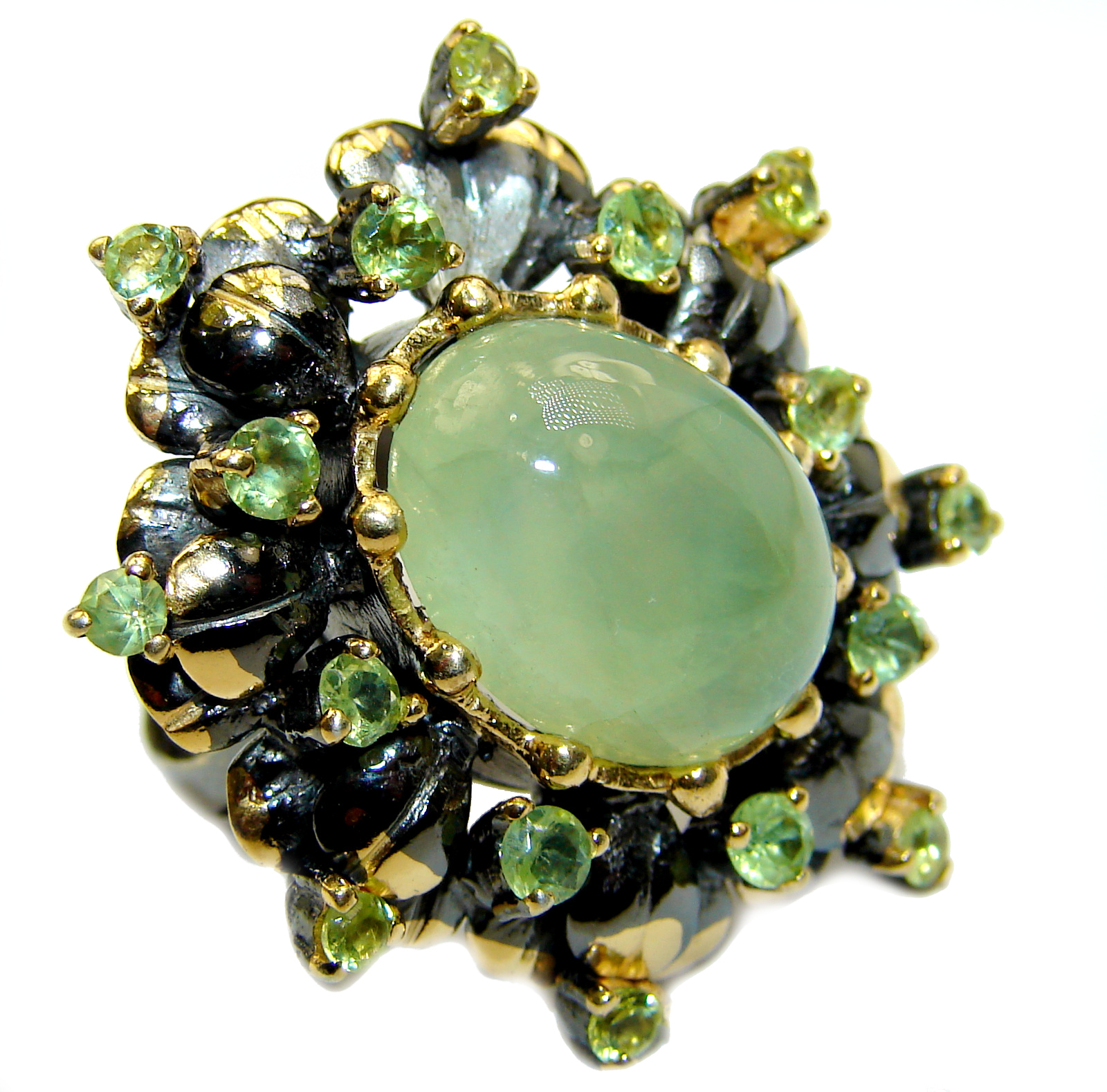 Chunky Natural Moss Prehnite Peridot 14K Gold over .925 Sterling Silver handmade ring s. 7