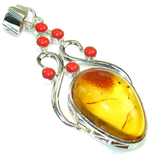 Big!Awesome Design!! Polish Amber Sterling Silver Pendant