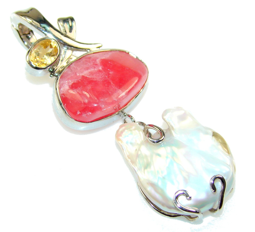 Amazing Pink Rhodochrosite Sterling Silver Pendant