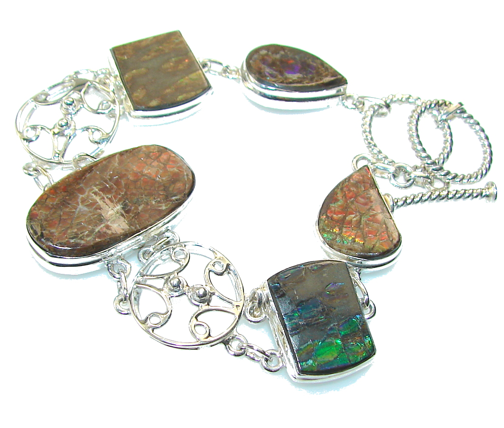 Delicate Multicolor Ammolite Sterling Silver Bracelet
