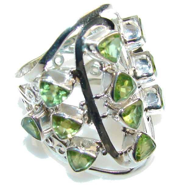 Royal Size Green Peridot Sterling Silver Ring s. 11