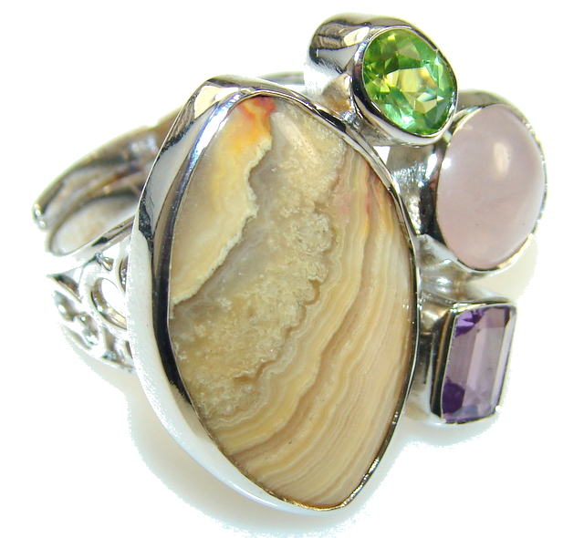 Stylish Crazy Banded Agate Sterling Silver ring s. 7- adjustable