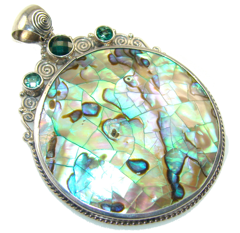 Big! Excellent Rainbow Abalone Sterling Silver Pendant