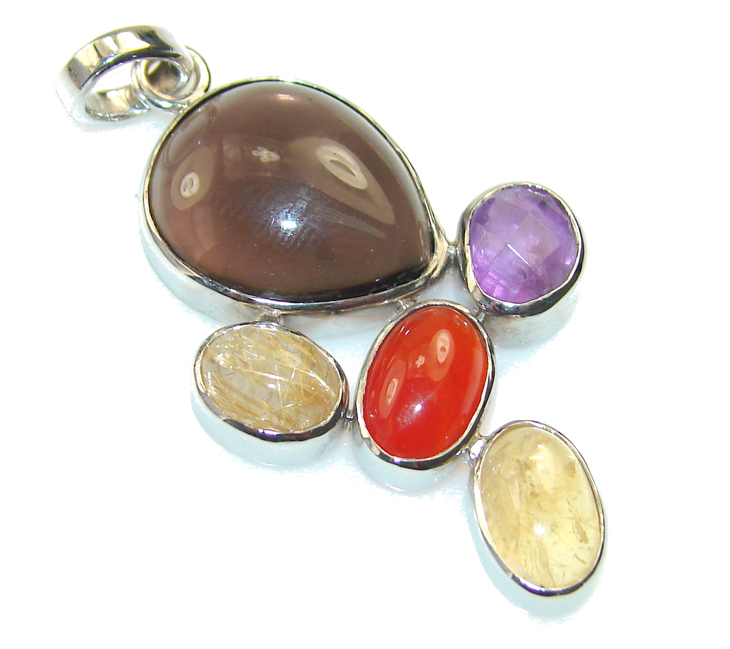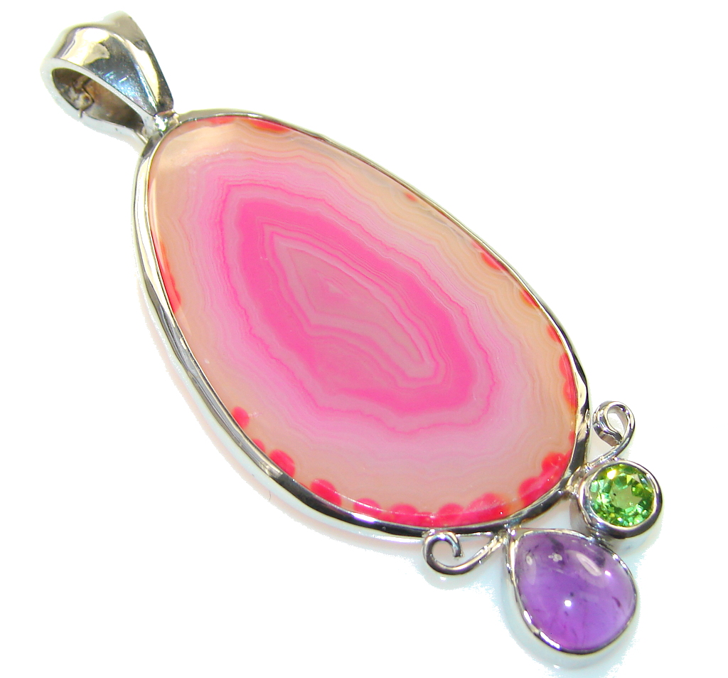 Exotic Pink Rose Quartz Sterling Silver pendant