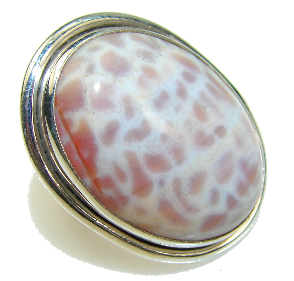 Secret Light Orange Mexican Fire Agate Sterling Silver Ring s. 6