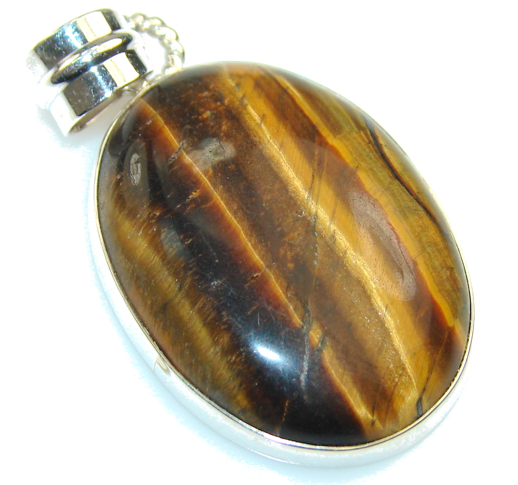Natural Brown Tigers Eye Sterling Silver Pendant