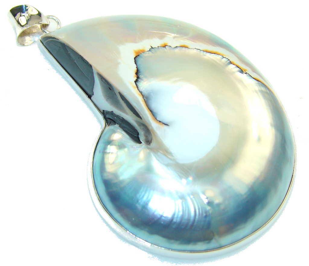 Huge!! Light Blue Ocean Shell Sterling Silver Pendant