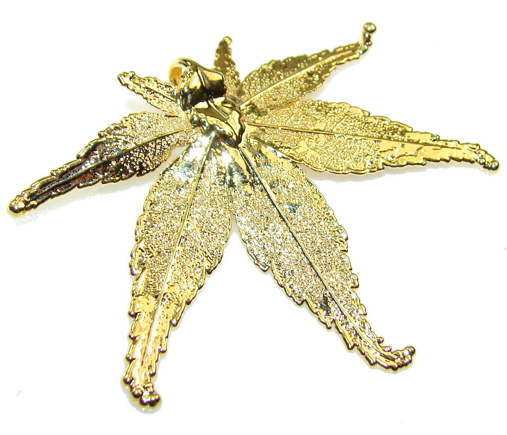Fabulous Real Leaf Dipped In 24K Gold Sterling Silver Pendant