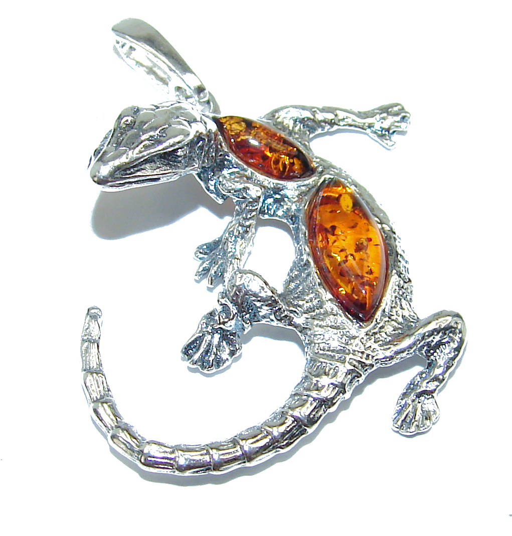 Lizard Amber .925 Sterling Silver handmade Pendant