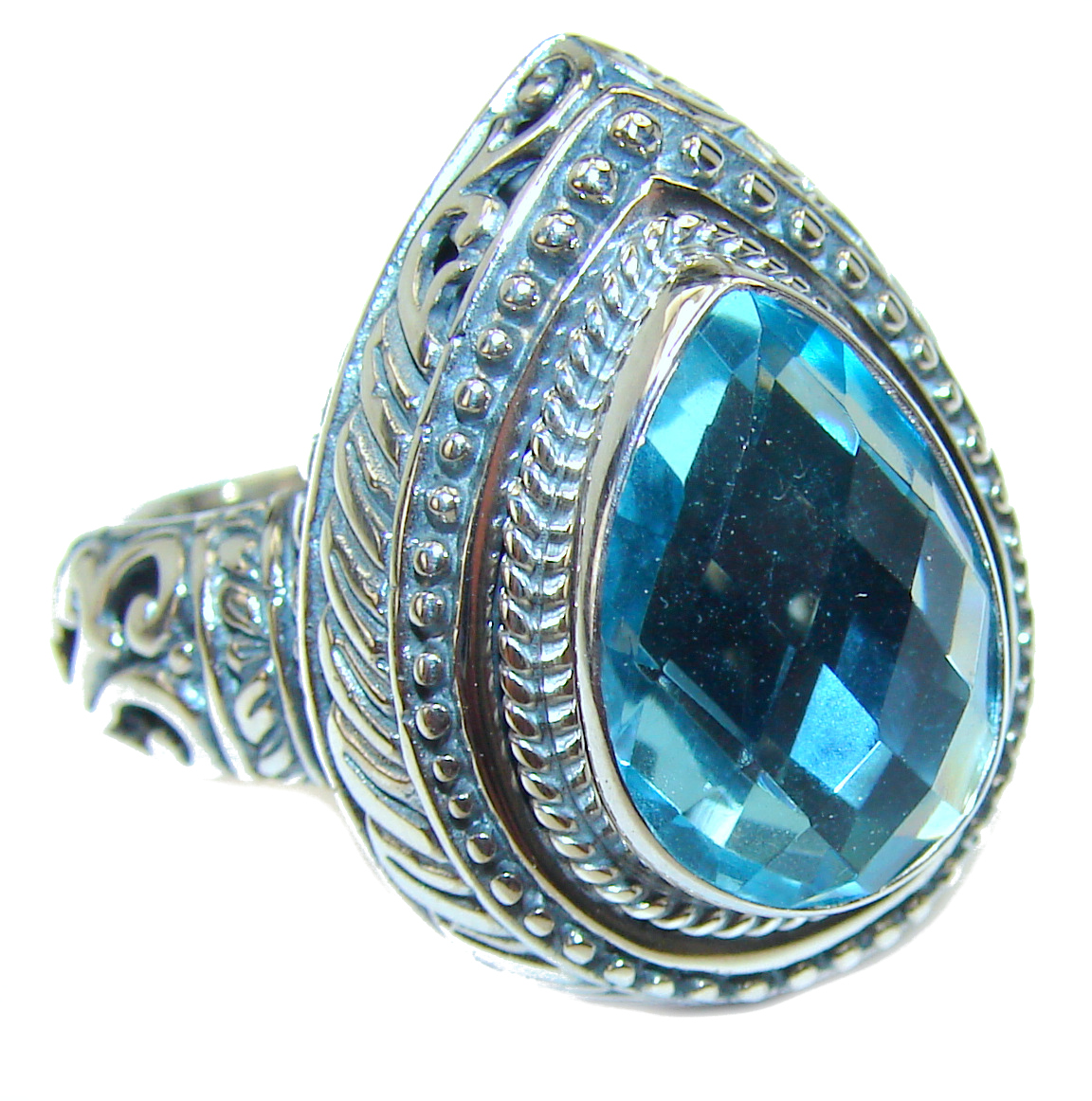 Swiss Blue Topaz .925 Sterling Silver handmade Ring size 8 1/4
