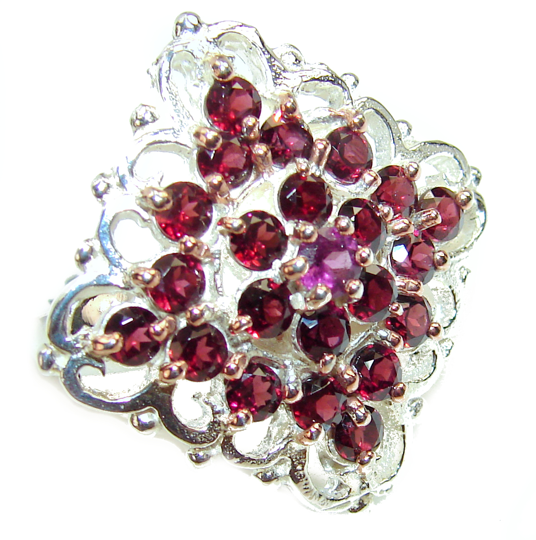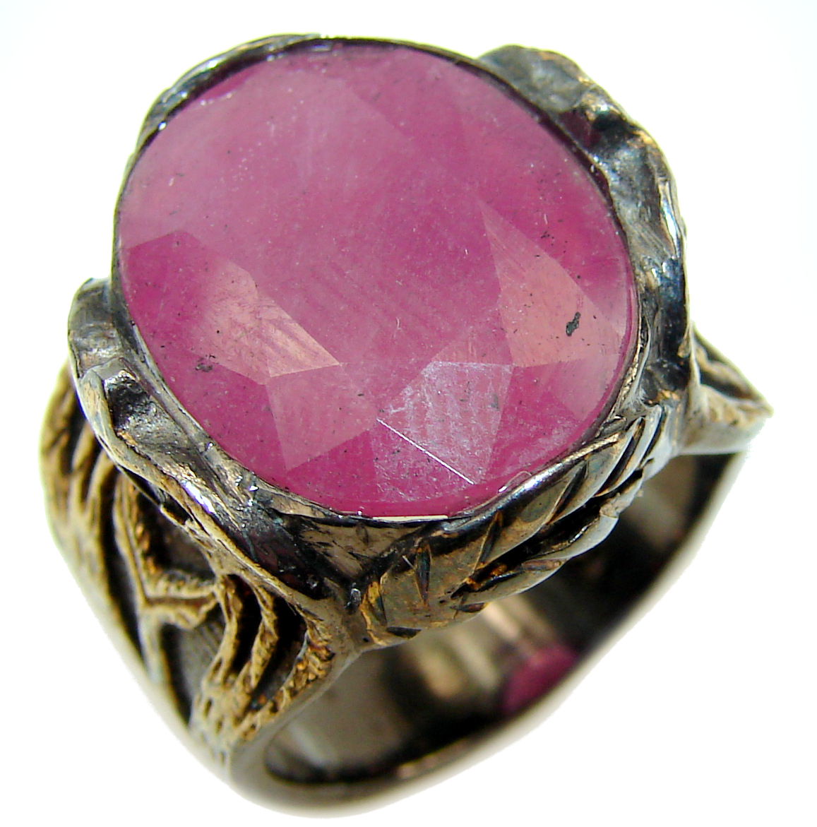Most incredible Ruby 2 tones .925 Sterling Silver handmade Cocktail Ring s. 7