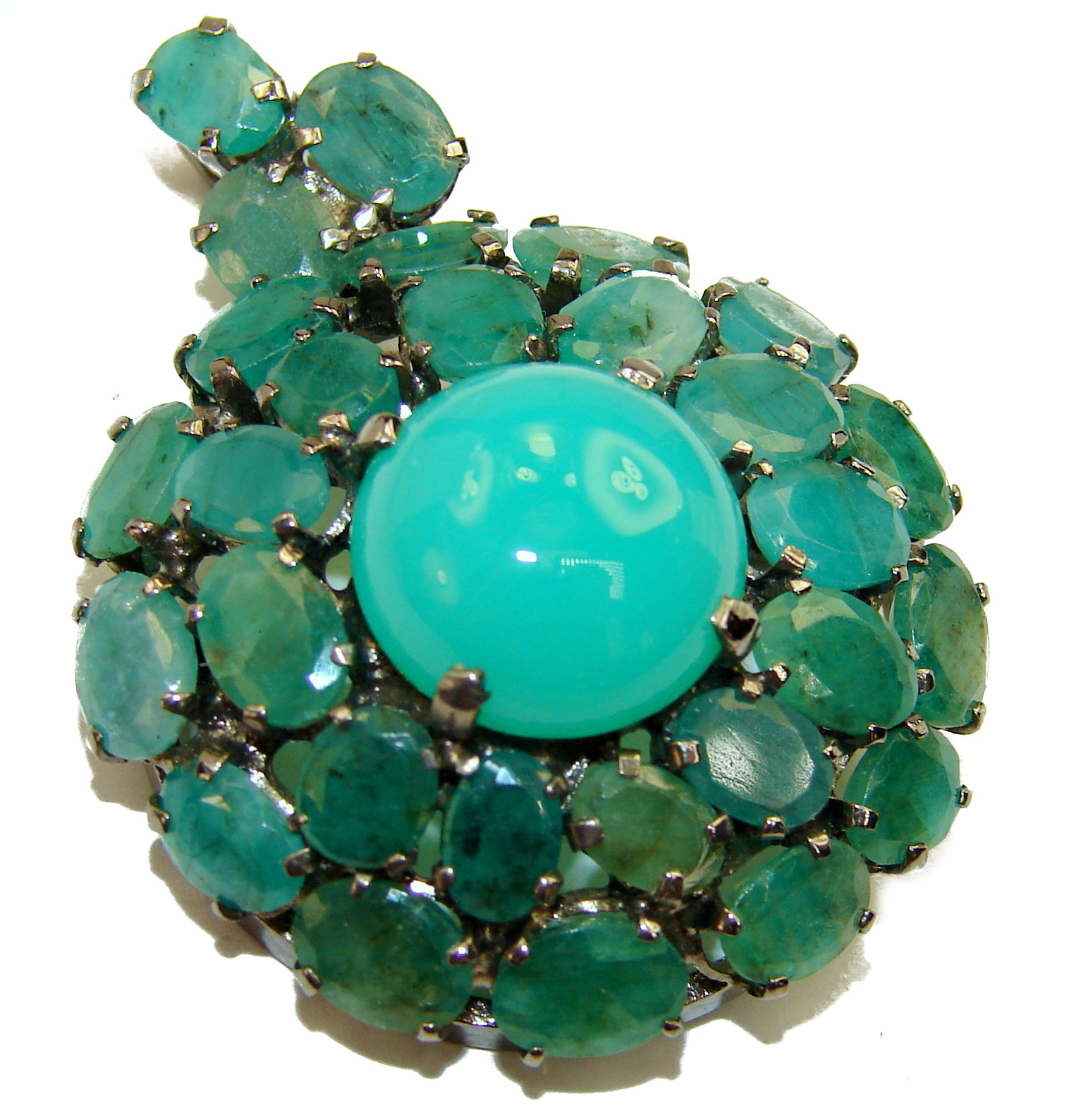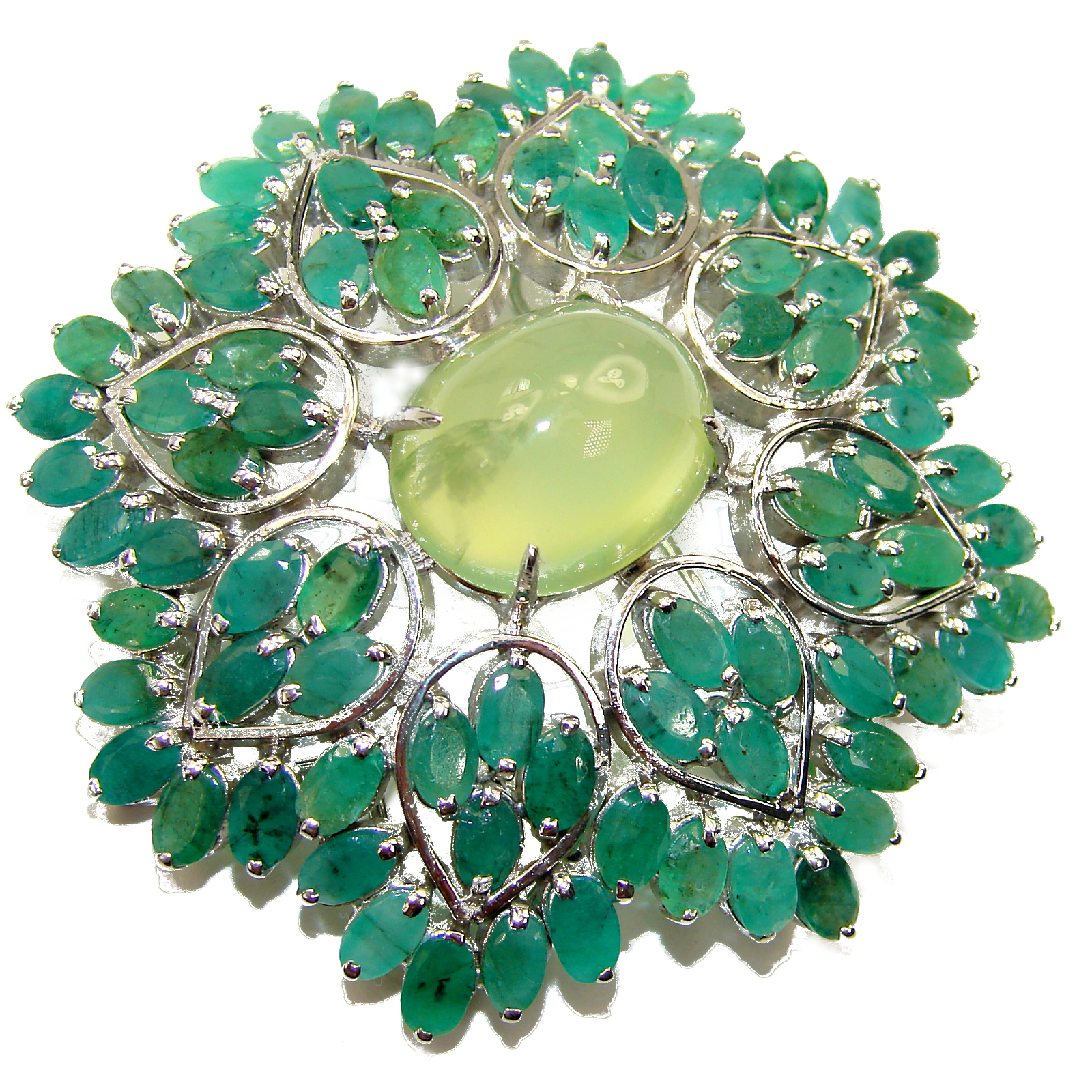 Great Beauty Chrysoprase Emerald .925 Sterling Silver handcrafted Pendant Brooch