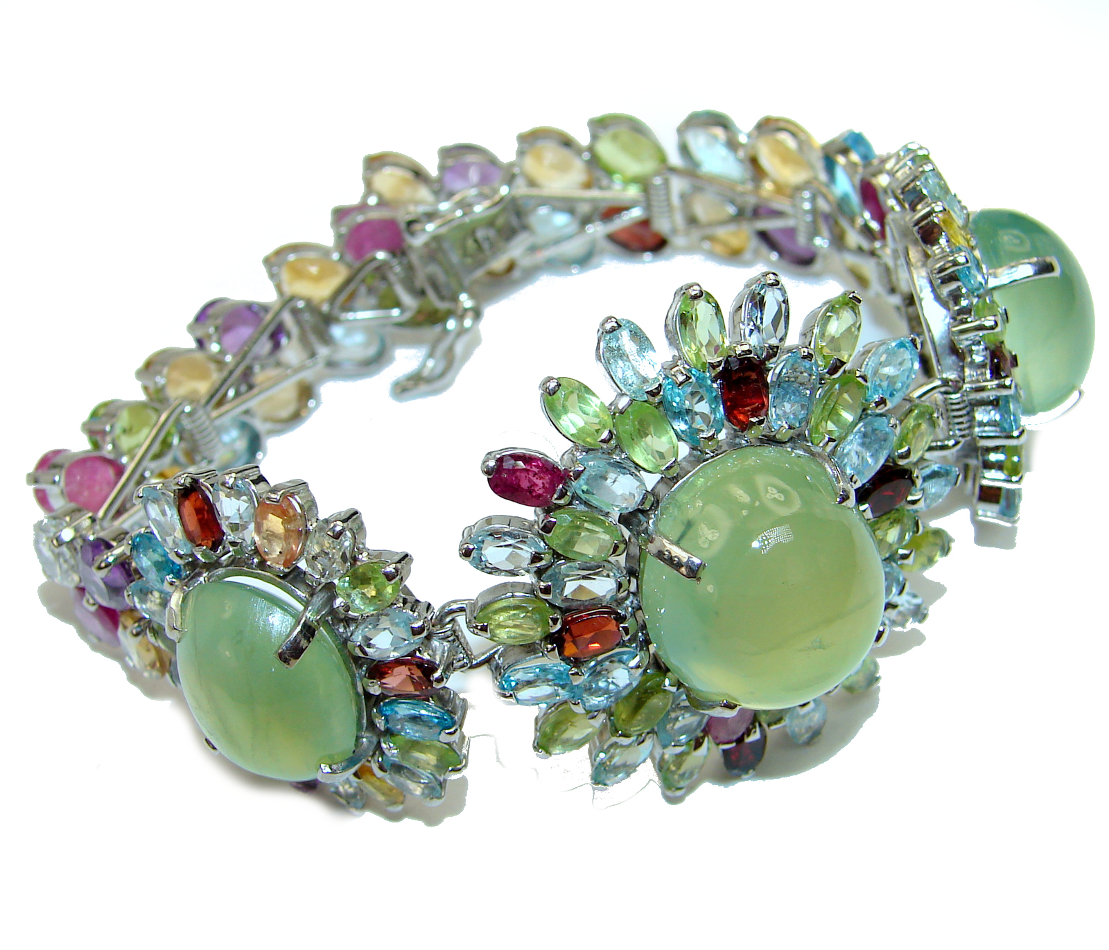 Green Royalty Huge Prehnite .925 Sterling Silver handcrafted Bracelet