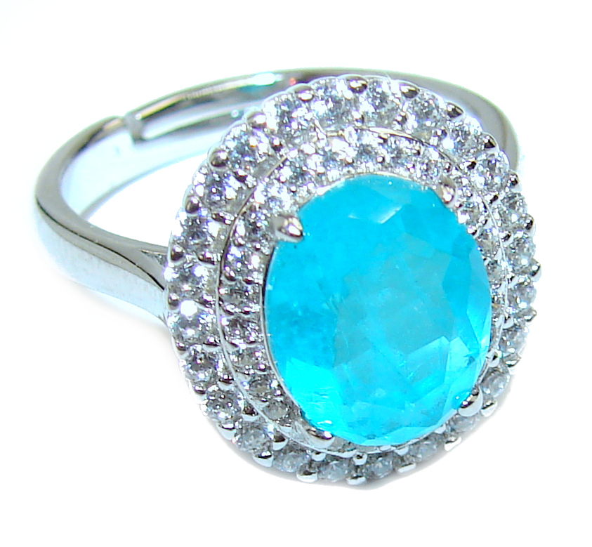 Oval Cut Paraiba Tourmaline .925 Sterling Silver handcrafted Statement Ring size 6 1/4