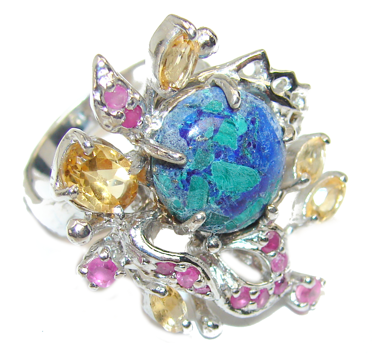 Great quality Blue Azurite 2 tones .925 Sterling Silver handcrafted Ring size 6 1/2