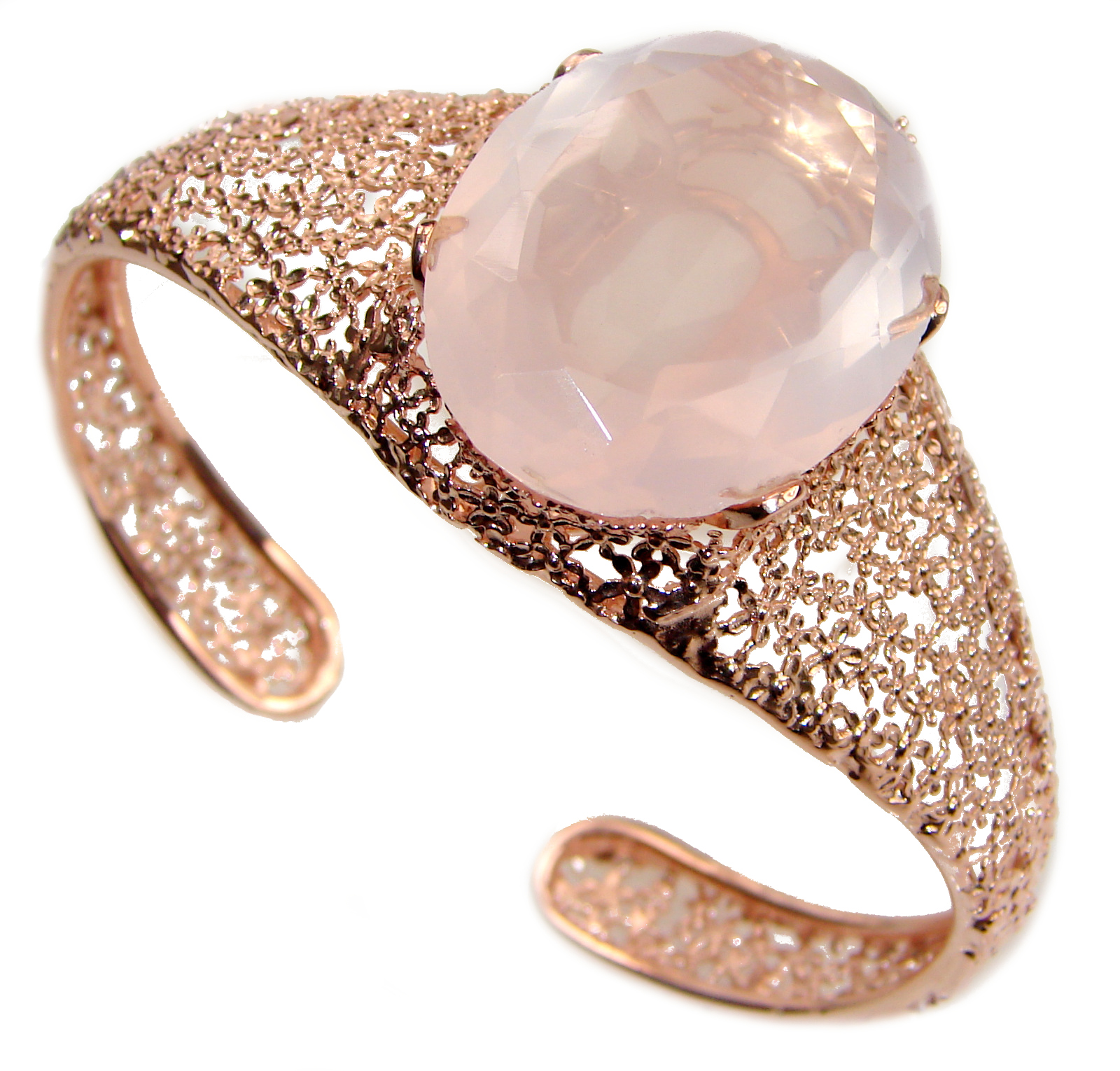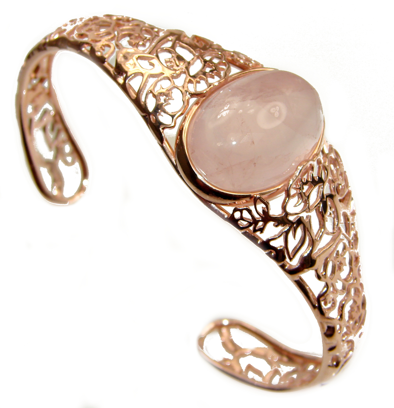 Incredible Genuine 65CTW Rose Quartz Rose quartz .925 Sterling Silver handcrafted Bracelet / Cuff