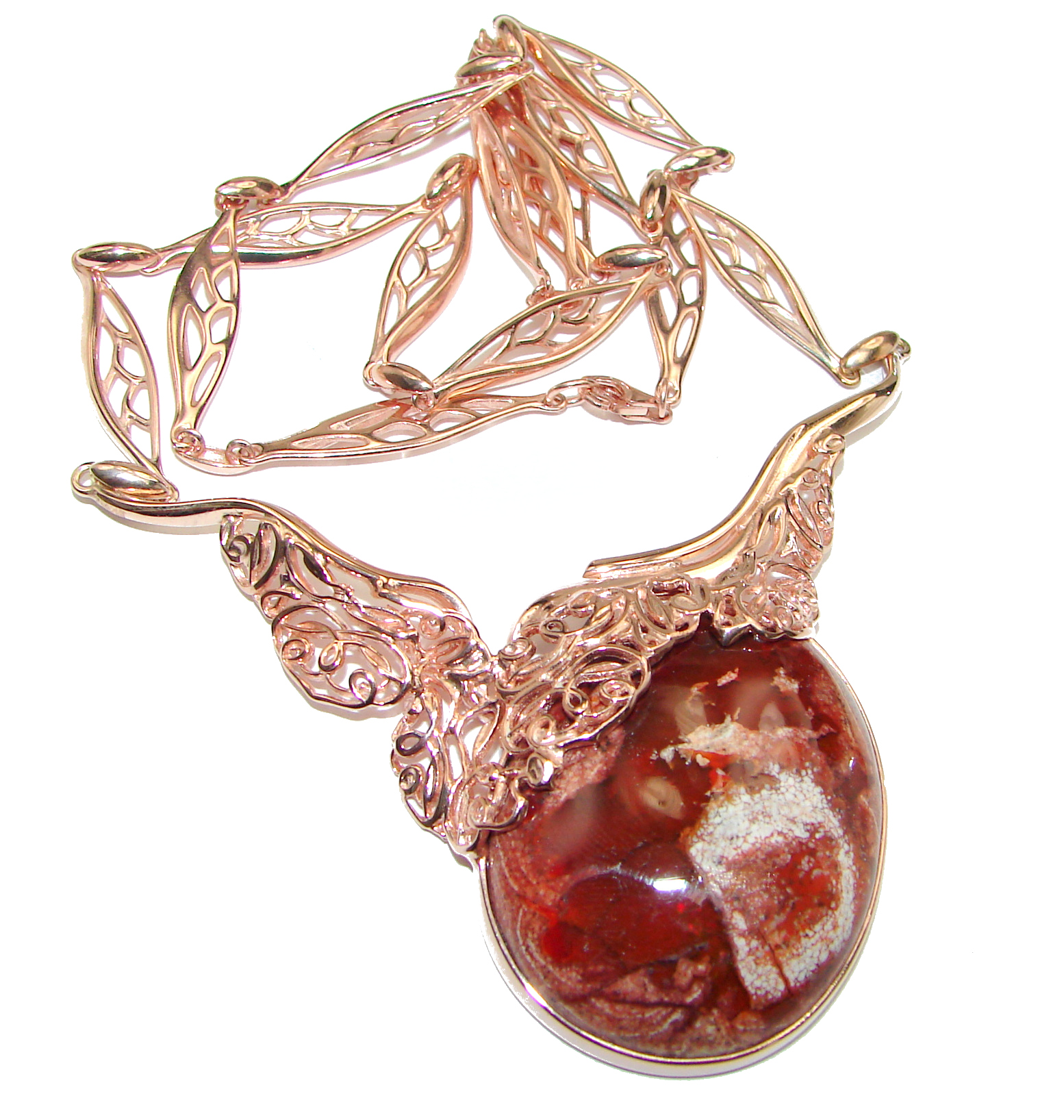 Large Master Piece genuine 175.5 ctw Mexican Opal Rose Gold over .925 Sterling Silver brilliantly handcrafted necklace