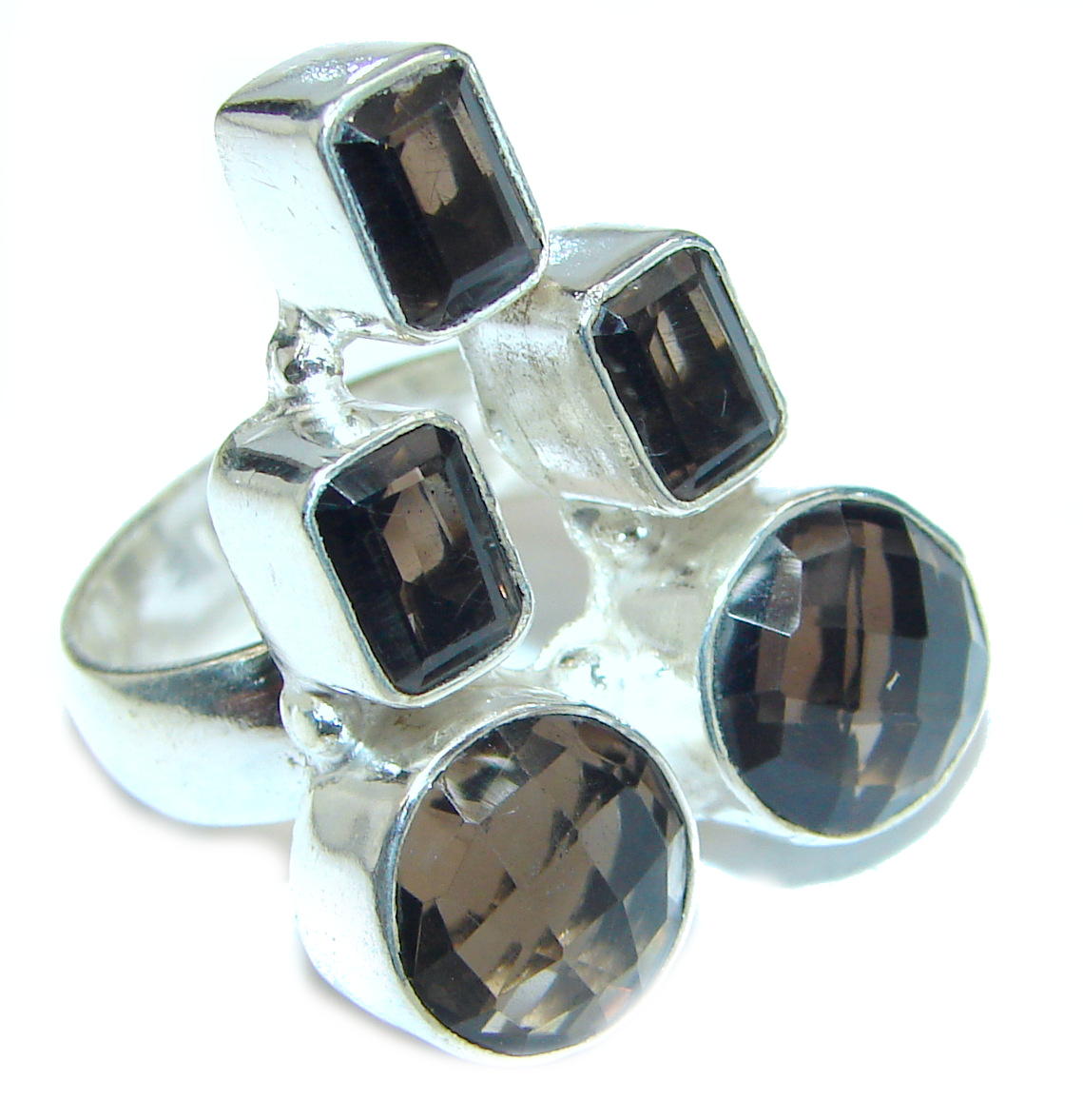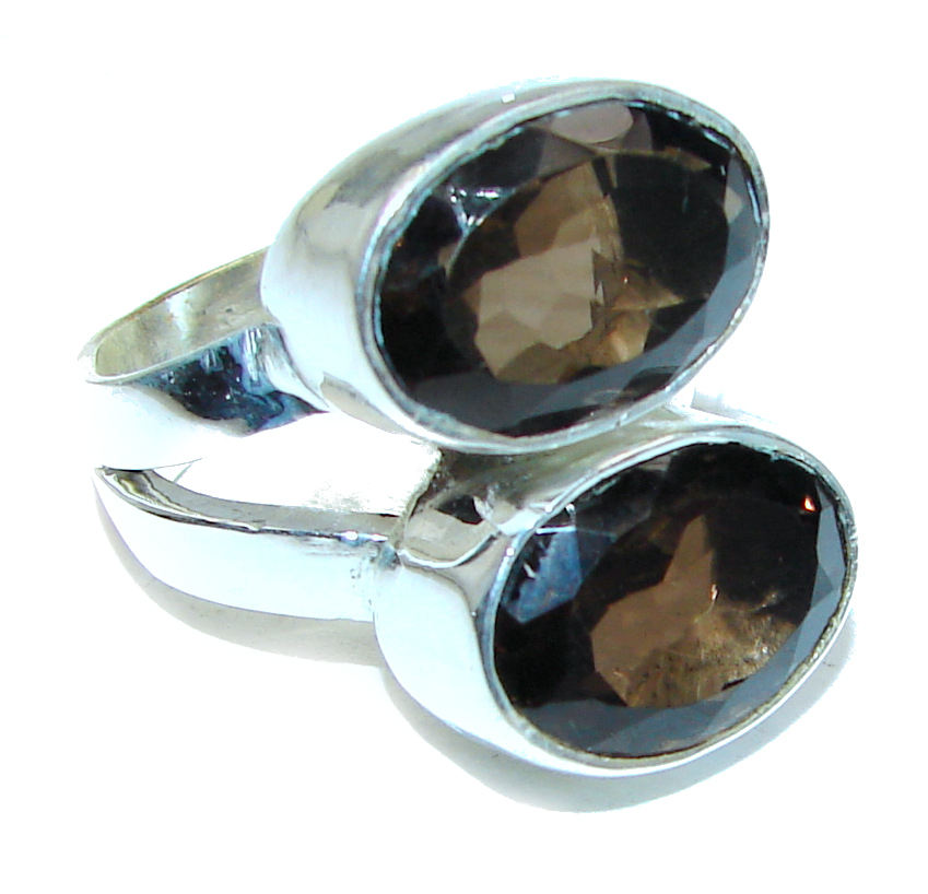 Authentic Smoky Quartz .925 Sterling Silver handcrafted ring s. 8 1/2