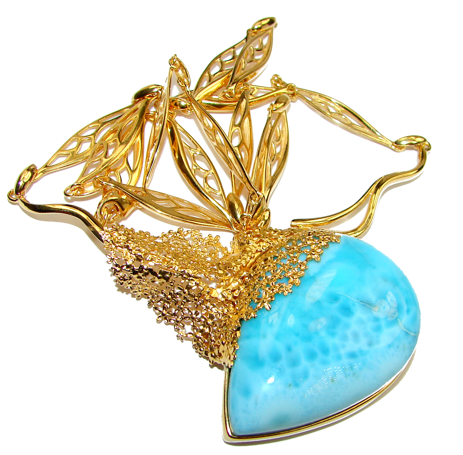 Great Masterpiece 42.5 grams genuine AAAAA QUALITY Larimar 24K Gold over .925 Sterling Silver handmade necklace