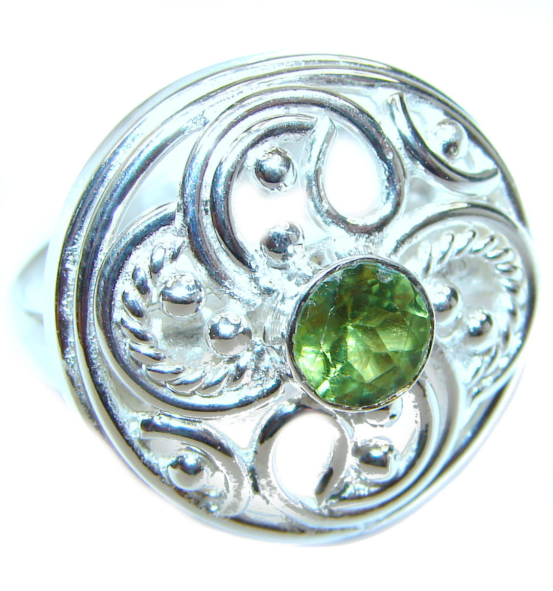 Aurora Spectacular Natural Peridot .925 Sterling Silver handcrafted ring size 8 1/2
