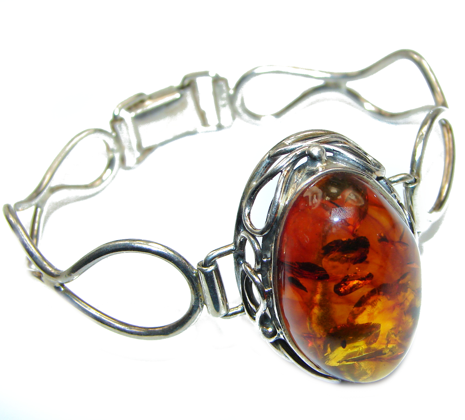 Vintage Design Genuine Polish Amber .925 Sterling Silver handamde Bracelet / Cuff