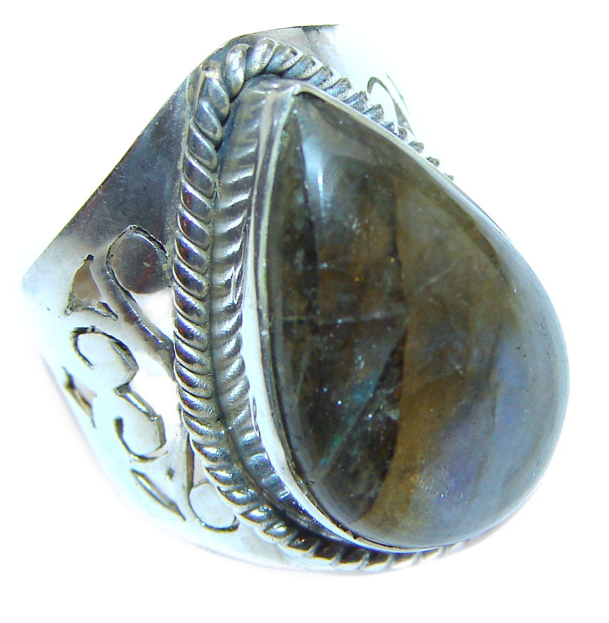 Vintage Design Genuine Labradorite .925 Sterling Silver handmade Cocktail Ring s. 6 1/4
