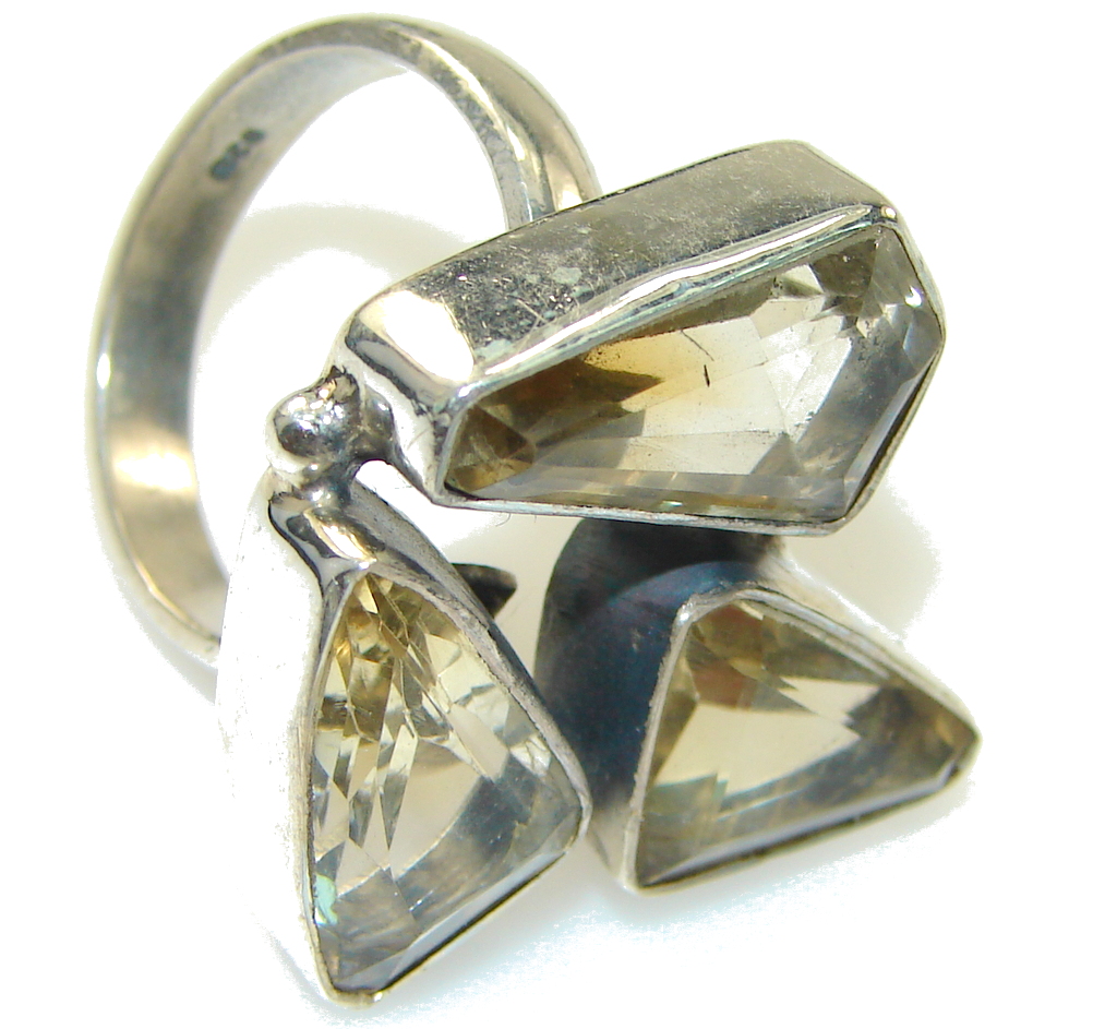 Jumbo! Faceted Citrine Sterling Silver Ring s. 7 1/2