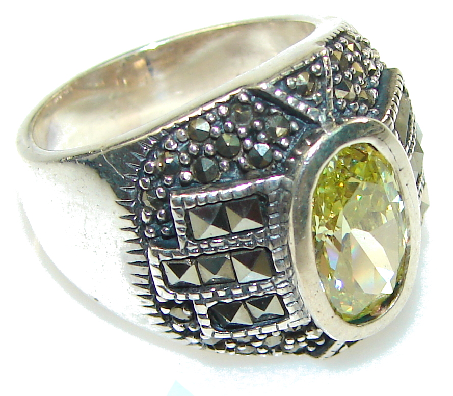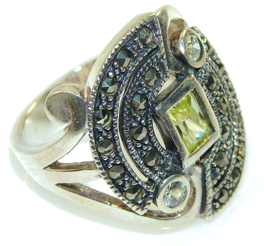 New! Faceted Green Peridot Quartz Sterling Silver Ring s. 7