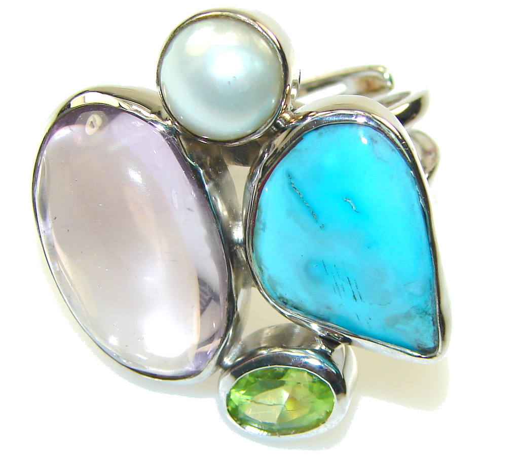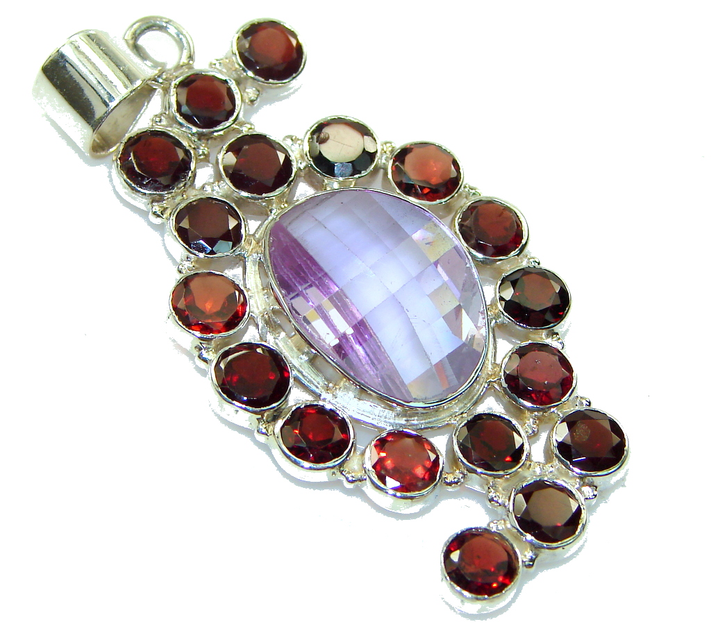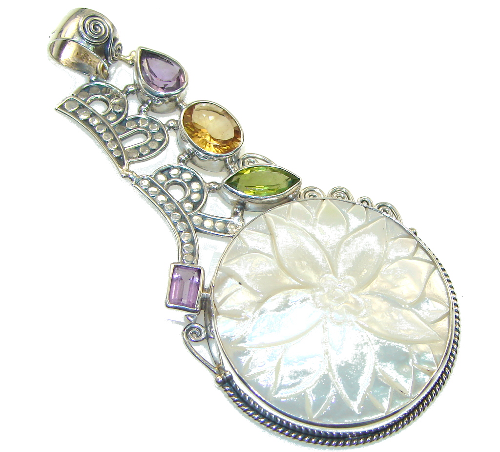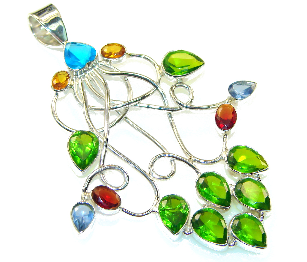 Large Precious Multicolor Quartz Sterling Silver Pendant