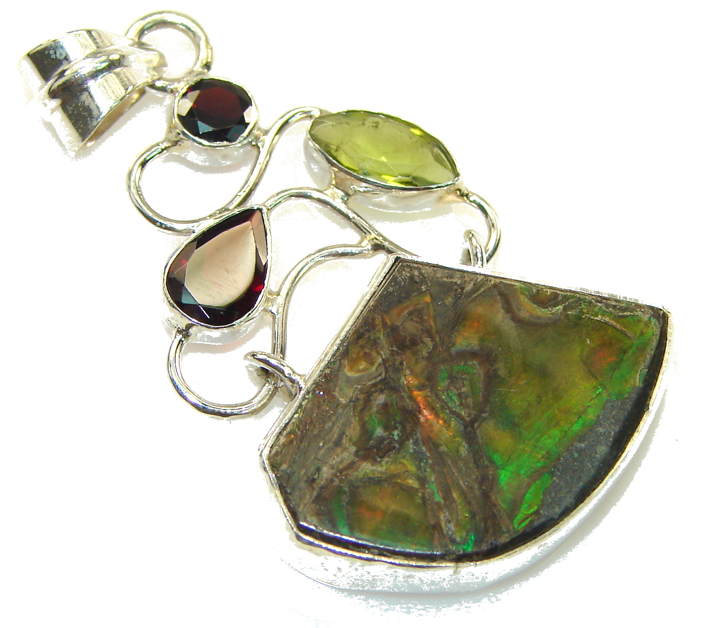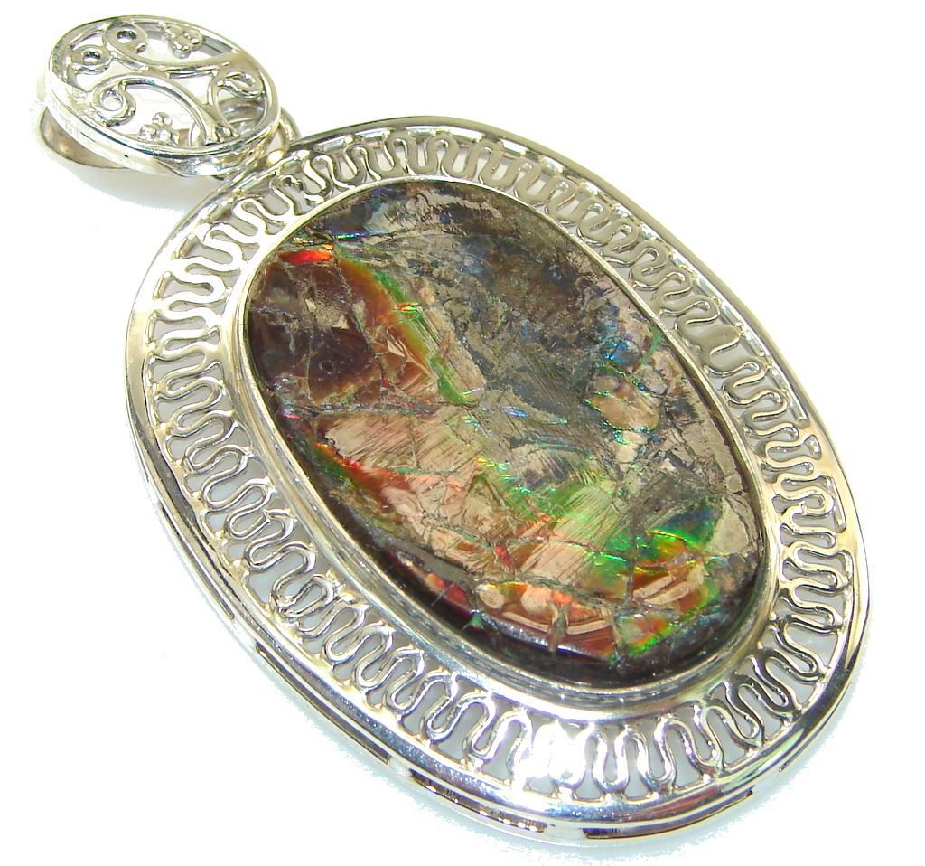 Secret Design! Ammolite Sterling Silver Pendant