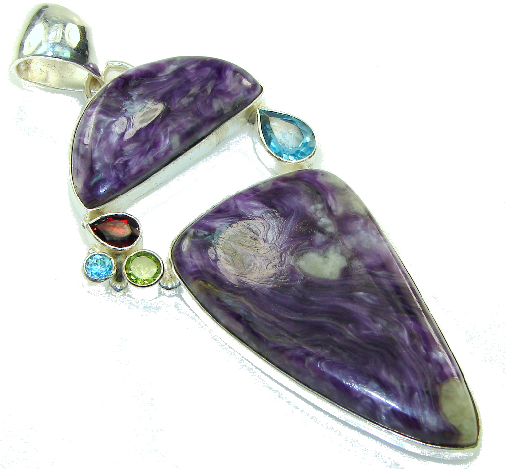Giant Siberian Purple Charoite Sterling Silver Pendant