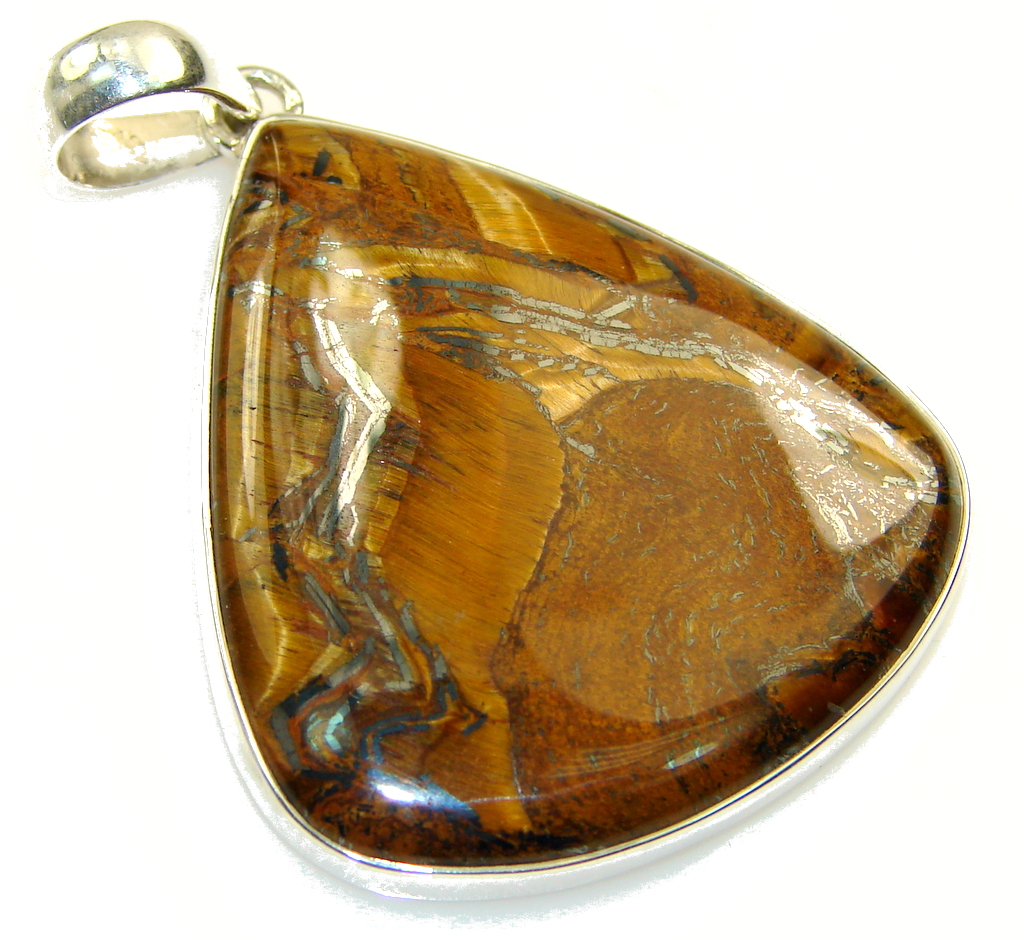 Fabulous Brown Tigers Eye Sterling Silver Pendant