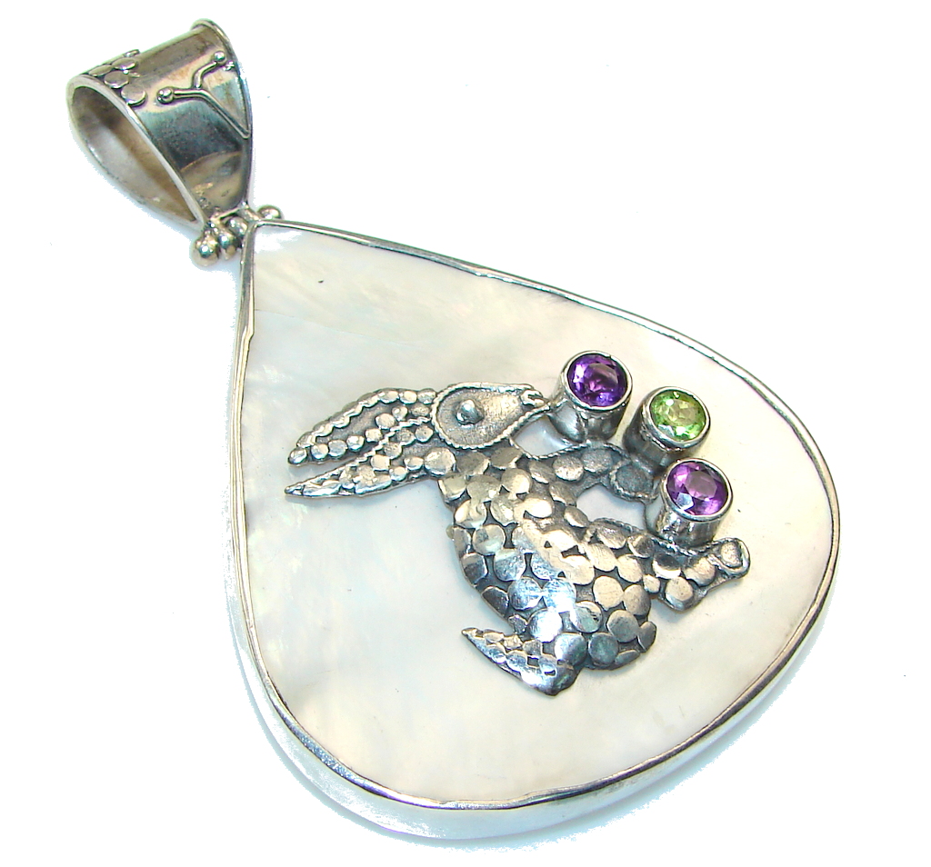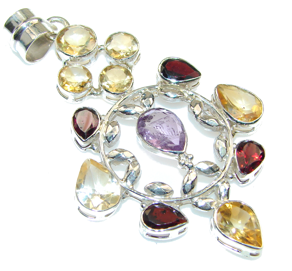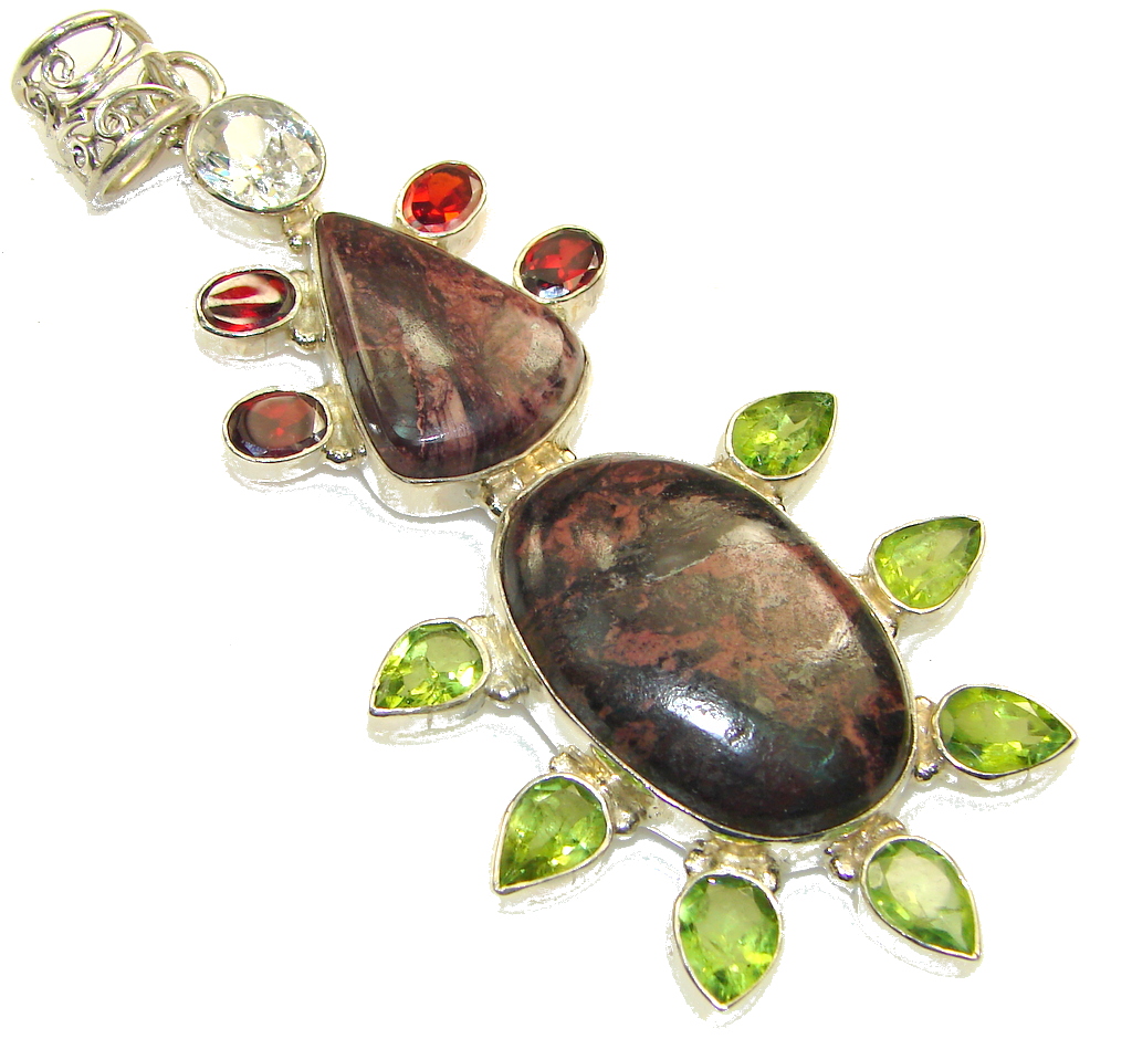 Beautiful Oriental Design Multigem Sterling Silver Pendant