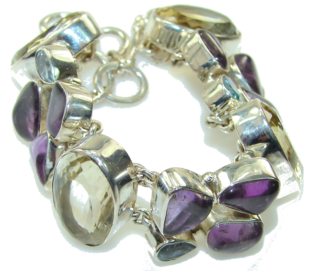 Natural Beauty!! Multigem Sterling Silver Bracelet