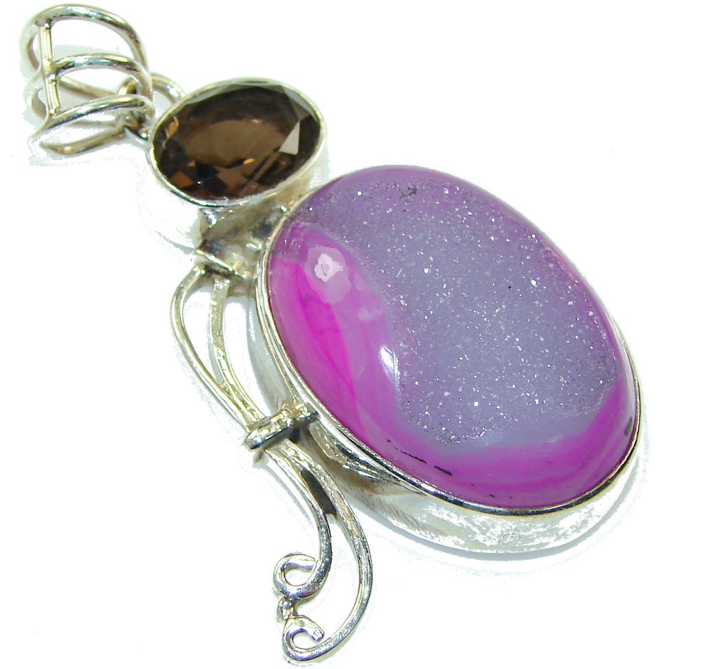 Huge! Stylish AAA Agate Druzy Sterling Silver Pendant