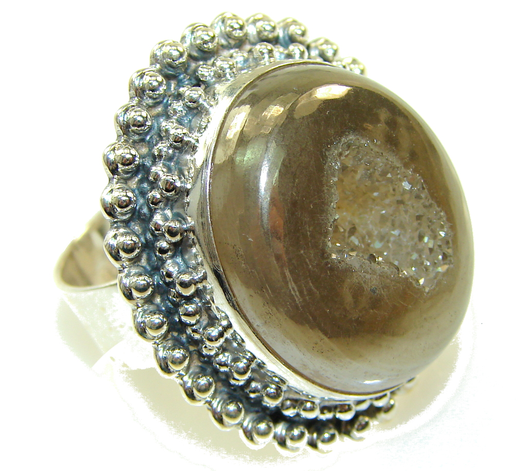New Classy Golden Druzy Sterling Silver Ring s. 9