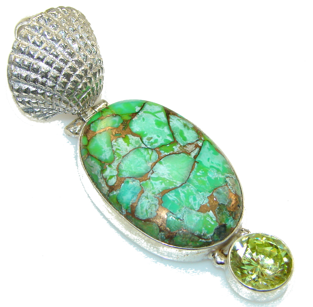 Big!! Dazzling Green Chrysocolla Sterling Silver pendant