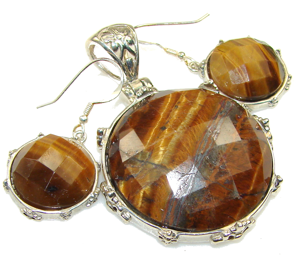 Amazing Design! Brown Tigers Eye Sterling Silver earrings / Set