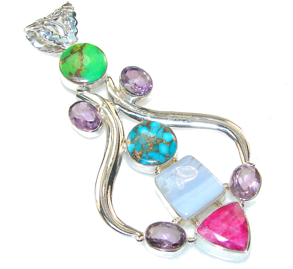 Aura Of Beauty!! Multigem Sterling Silver Pendant
