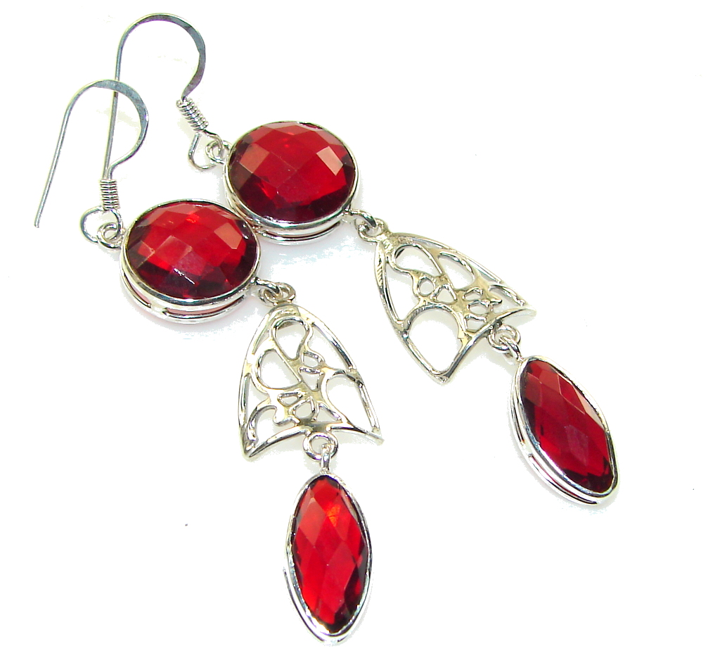 Lovely Red Garnet Quartz Sterling Silver earrings