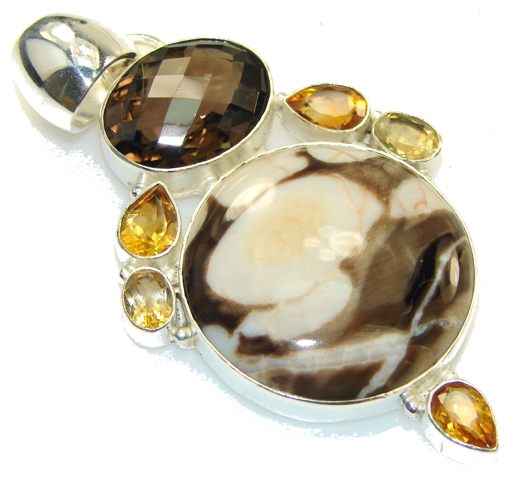 Big! Tidal Wave Of Nuggetc Jasper Sterling Silver Pendant