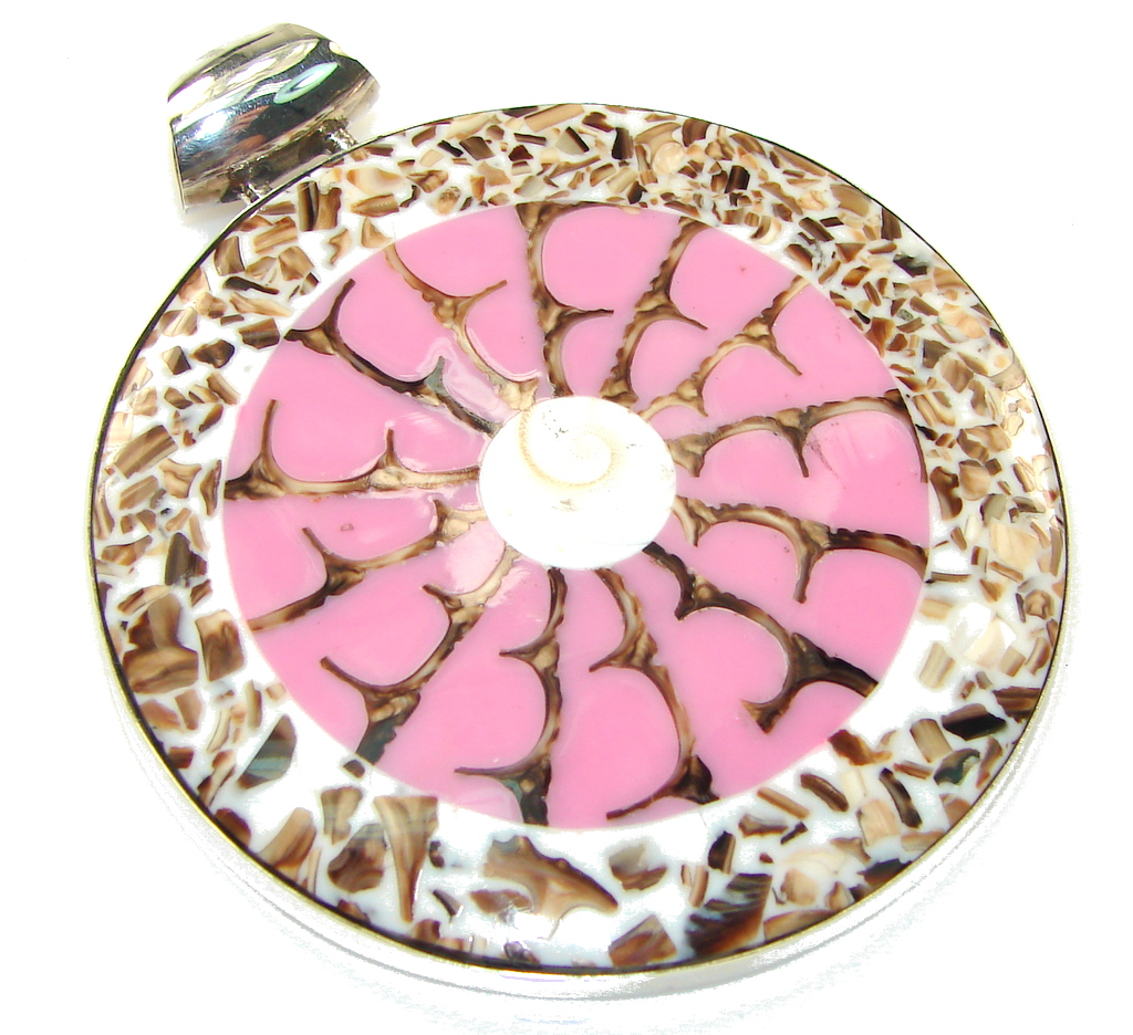 Big! Precious Ocean Pink Shell Sterling Silver Pendant