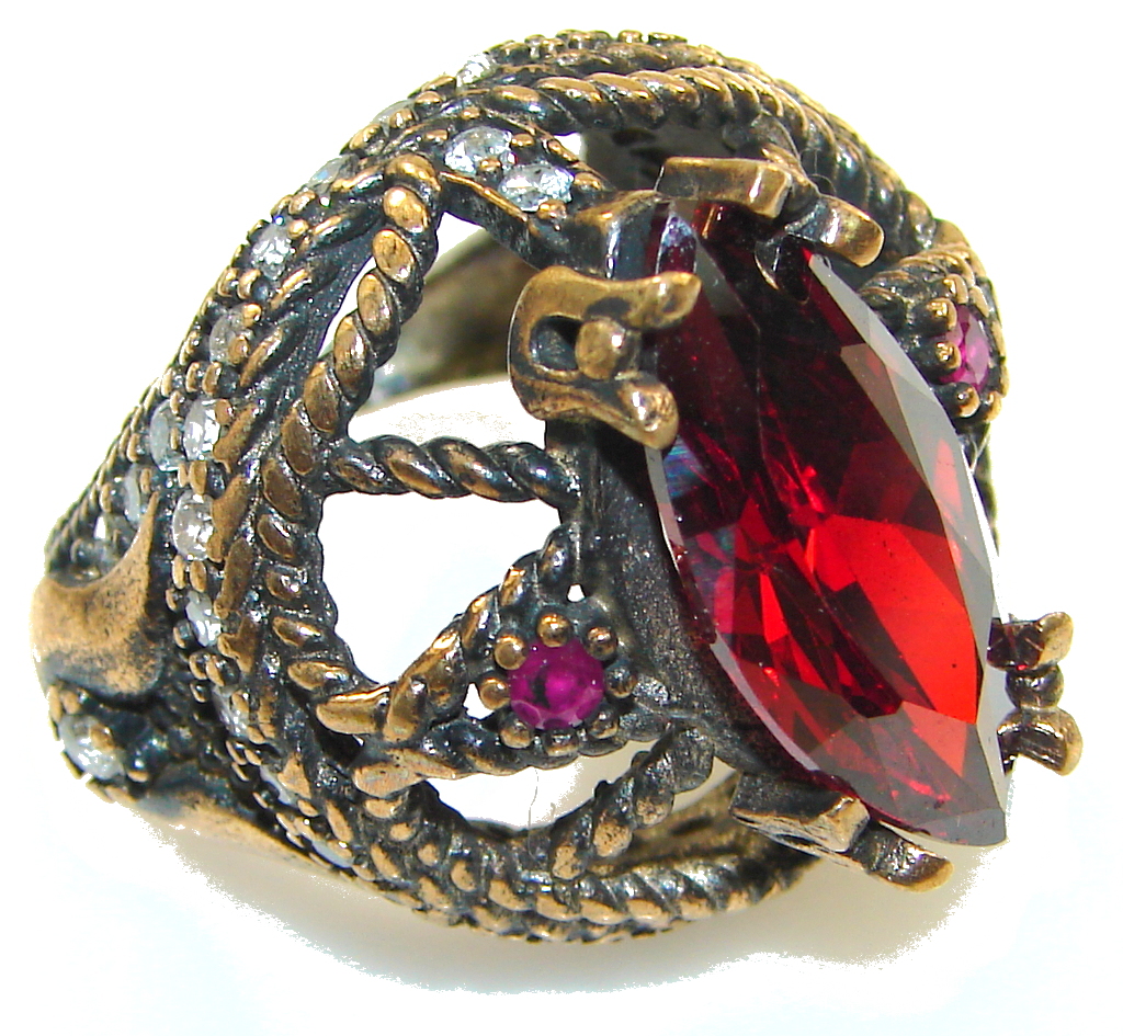 Turkish Design!! Deep Red Ruby Two Tones Sterling Silver ring s. 7