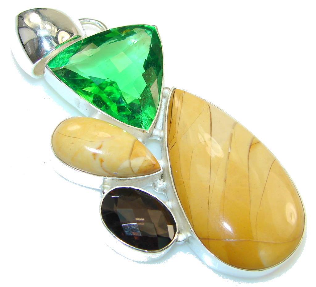 Big! Awesome Style Of Ocean Jasper Sterling Silver Pendant